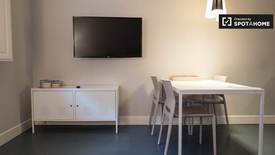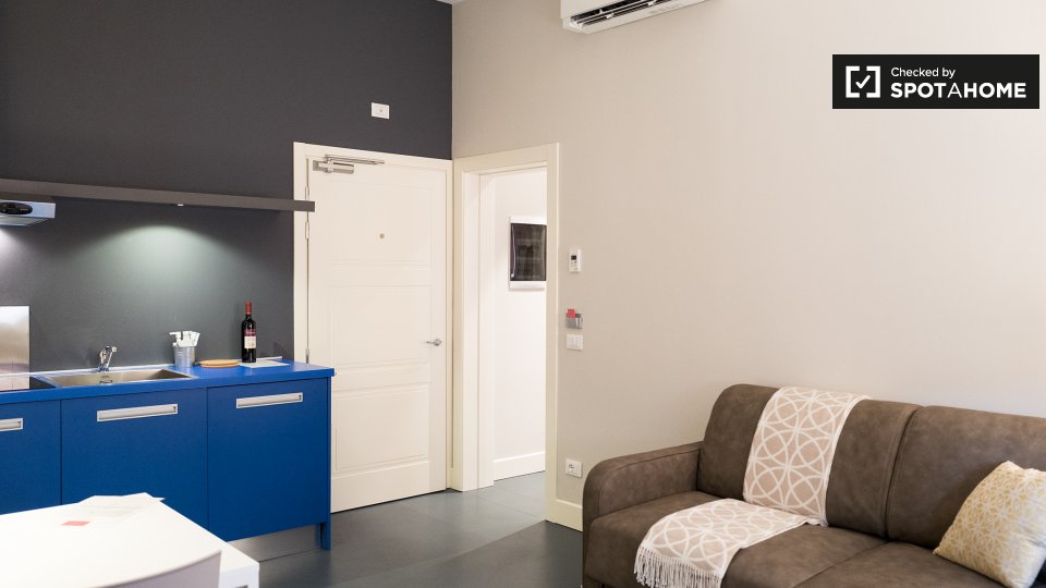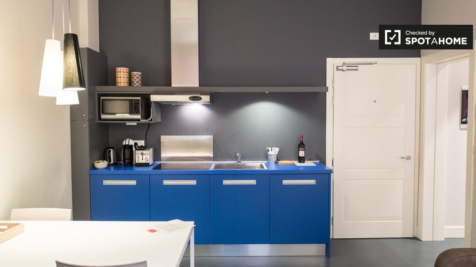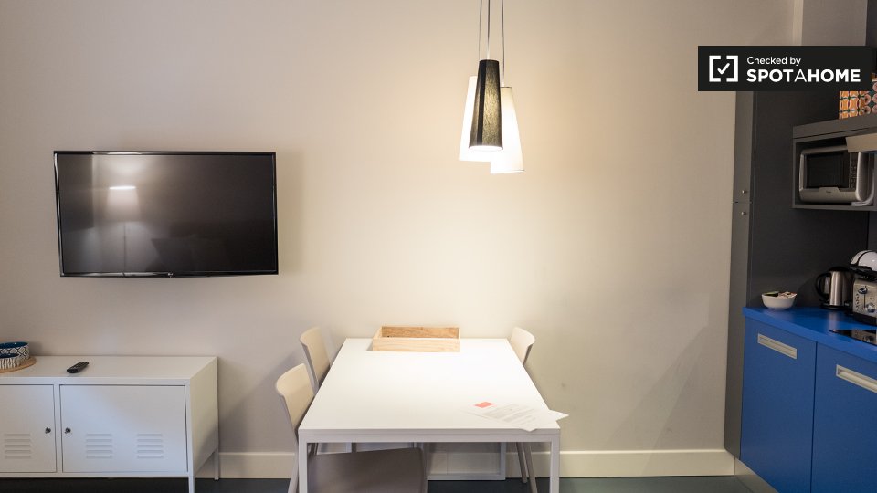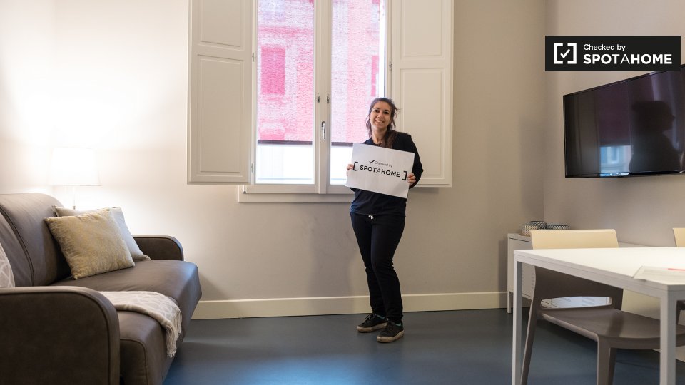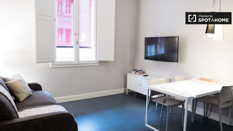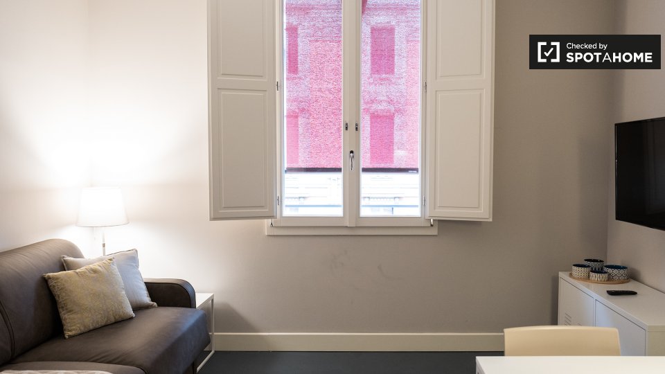 Questo appartamento di 35 m² con 1 camera da letto è una struttura elegante e moderna nel vivace quartiere di Irnerio. Entrando si ha una cucina a pianta aperta e soggiorno arredato con un divano, tavolo da pranzo e TV a schermo piatto. L'angolo c...
