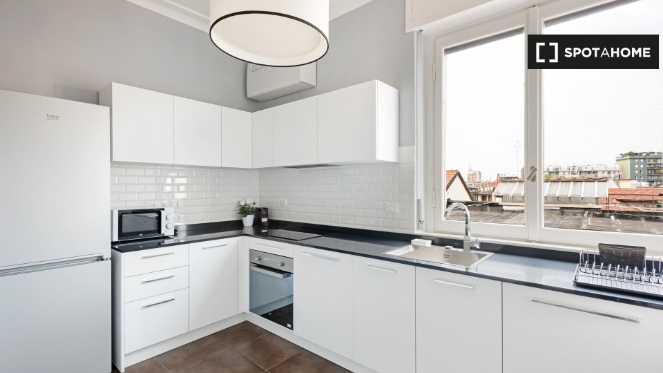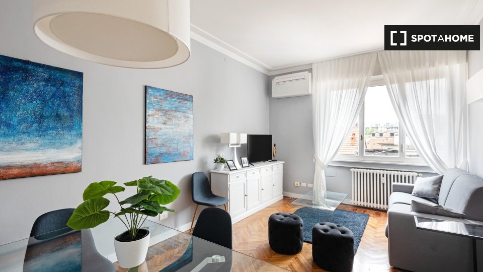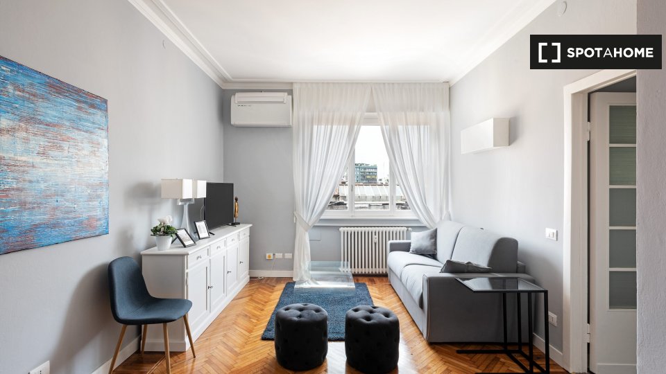 Appartamento arredato con 2 camere da letto in affitto su Corso Di Porta Nuova. L'immobile si trova al 4 ° piano di una palazzina con ascensore. La proprietà include aria condizionata, asciugatrice e balcone.
