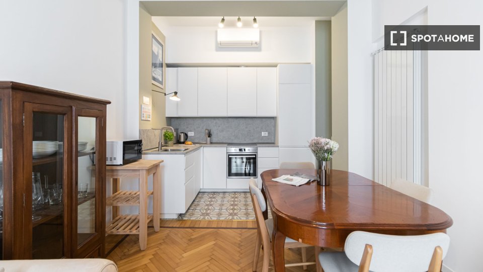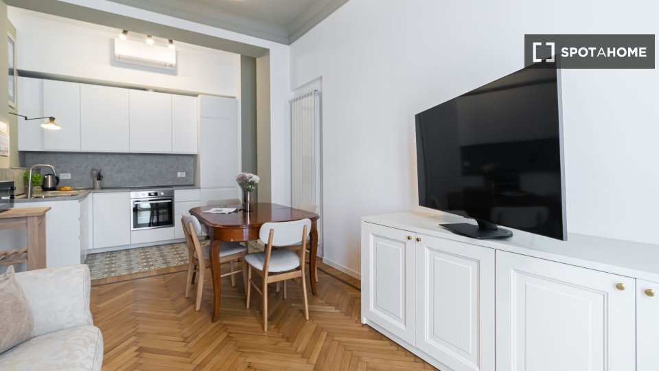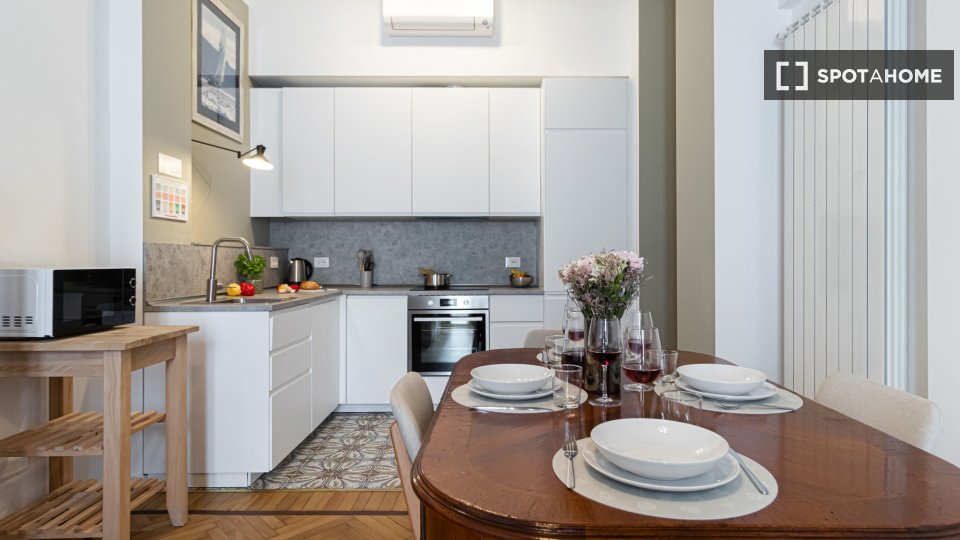 Benvenuti in questo grazioso appartamento con una camera da letto situato nel quartiere Centro di Torino. L'appartamento è completamente attrezzato con interni arredati, TV e lavatrice privata, offrendo un'esperienza di vita confortevole. La cucin...