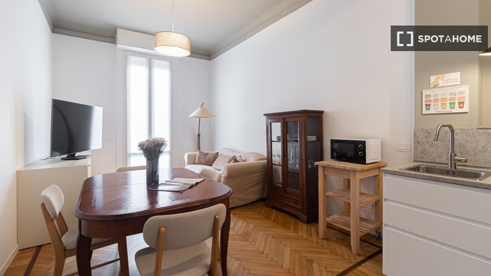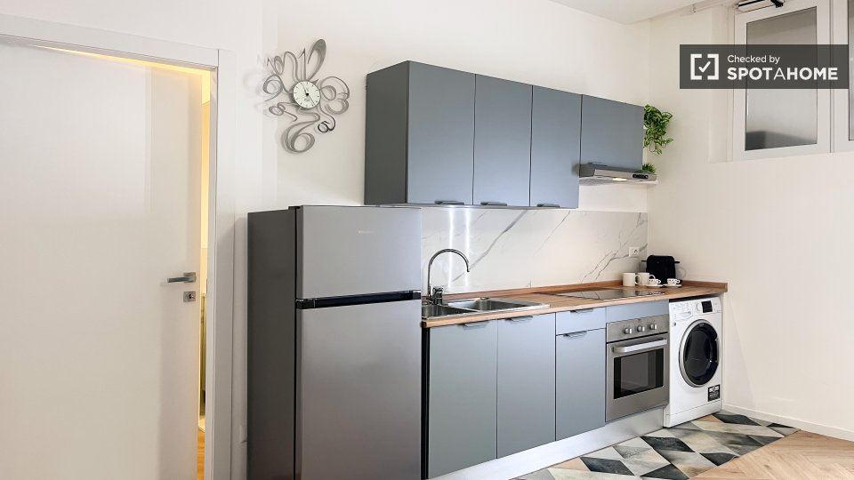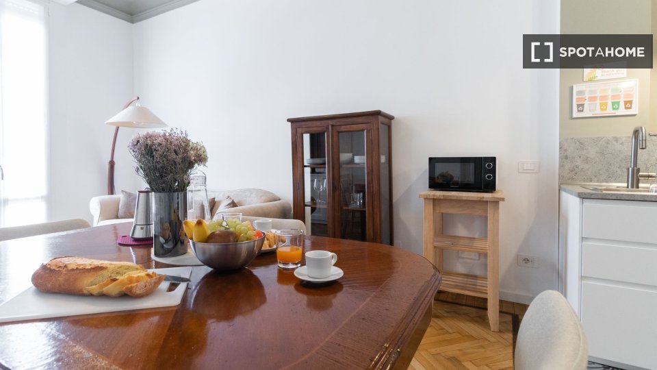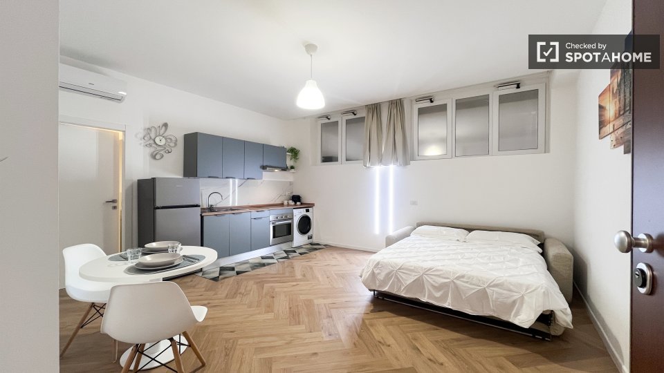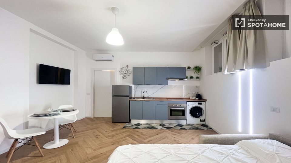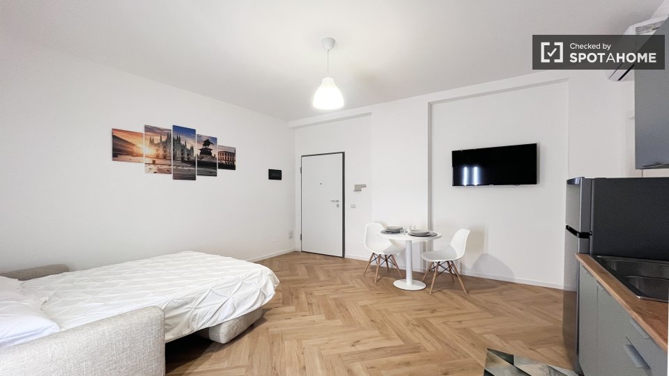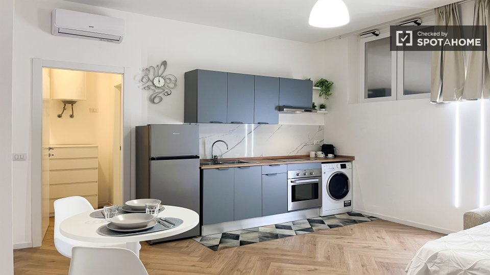 Scopri un monolocale in affitto a Dergano, Milano. L'immobile è completamente arredato e dotato di aria condizionata individuale, riscaldamento elettrico e cucina ben attrezzata. Include una lavatrice privata e il WiFi, garantendo comfort e pratic...