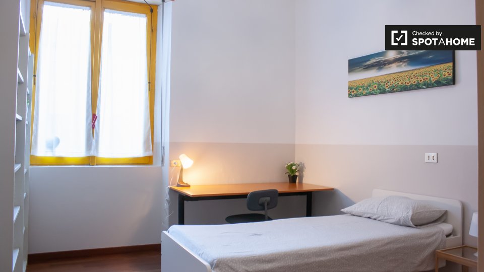 Questa stanza si trova in un appartamento condiviso con 6 camere da letto a Portello, Milano. L'immobile è riservato esclusivamente a studentesse. L'appartamento è arredato e dispone di aria condizionata individuale, cucina attrezzata, lavatrice p...