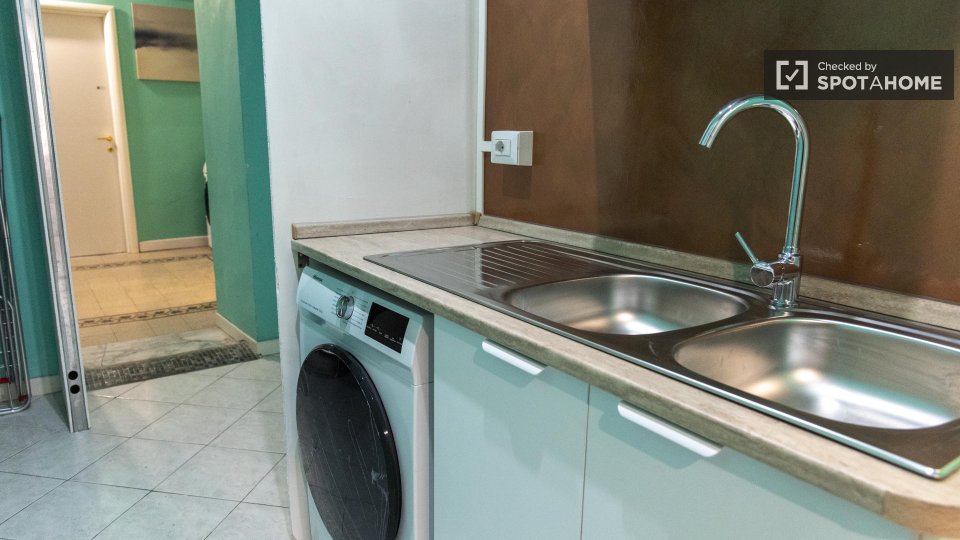 Questa accogliente camera si trova in un appartamento condiviso con 3 camere da letto situato nel Rione Esquilino, a Roma. L'appartamento è completamente arredato, dotato di lavatrice e forno, e vanta una splendida facciata esterna con balcone. È ...