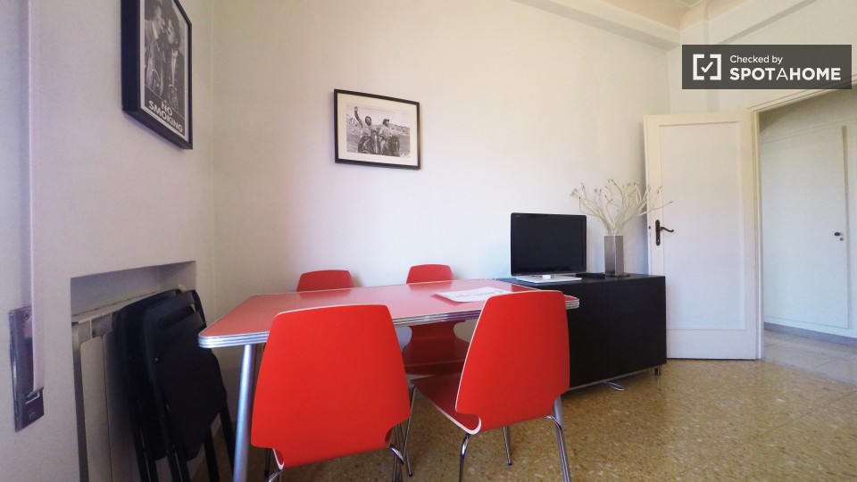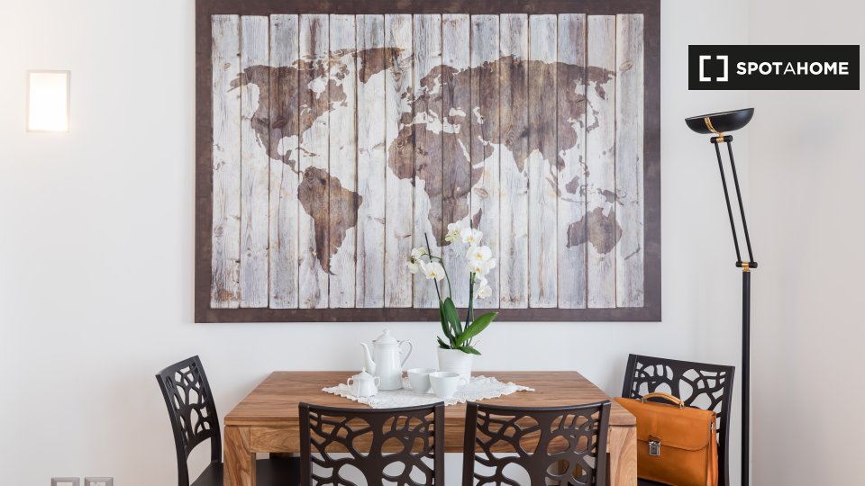 Entrate in questo luminoso e confortevole appartamento con una camera da letto situato a Pietralata, Roma. Completamente arredato e attrezzato, l'immobile include un balcone, riscaldamento centralizzato e lavatrice privata, tra gli altri comfort. ...