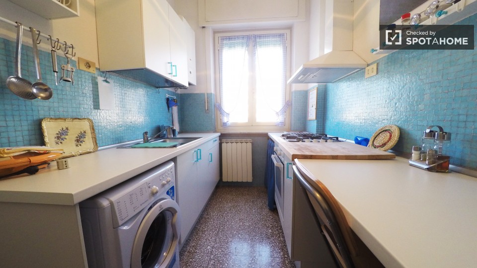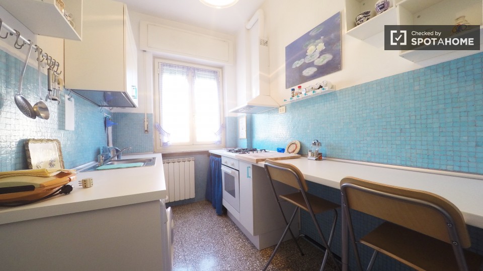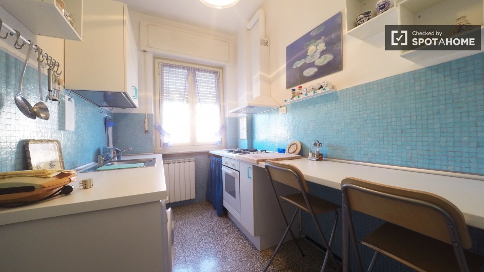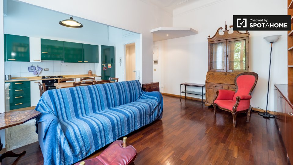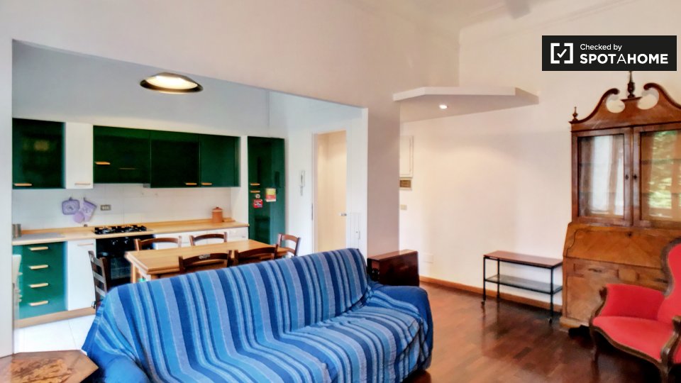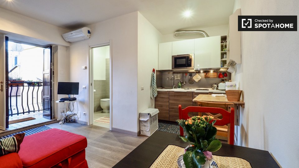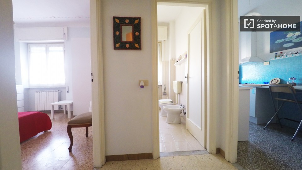 Questo monolocale in affitto nel quartiere Aurelio, vicino al Vaticano ea 20 minuti in autobus dal centro città è tutto ciò di cui avete bisogno per rendere la vostra vita a Roma molto comoda. L'appartamento è compatto ma ha il riscaldamento centr...
