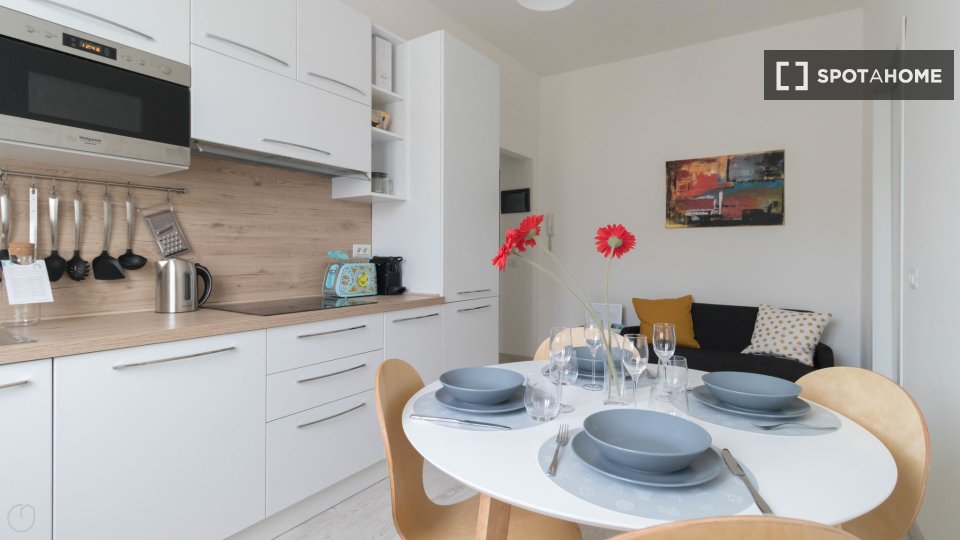 Questo appartamento arredato con una camera da letto a Sarpi, Milano, è perfetto per professionisti, studenti e coppie. L'appartamento è esposto all'esterno e dispone di aria condizionata centralizzata. Dispone inoltre di TV, lavastoviglie e lavat...
