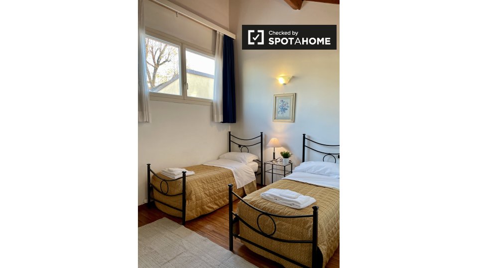 Questo appartamento recentemente ristrutturato e adatto a due coppie dispone di due camere da affittare. Ognuna delle spaziose camere da letto è pensata e confortevolmente arredata e arredata con tutto il necessario per il vostro soggiorno. Entram...