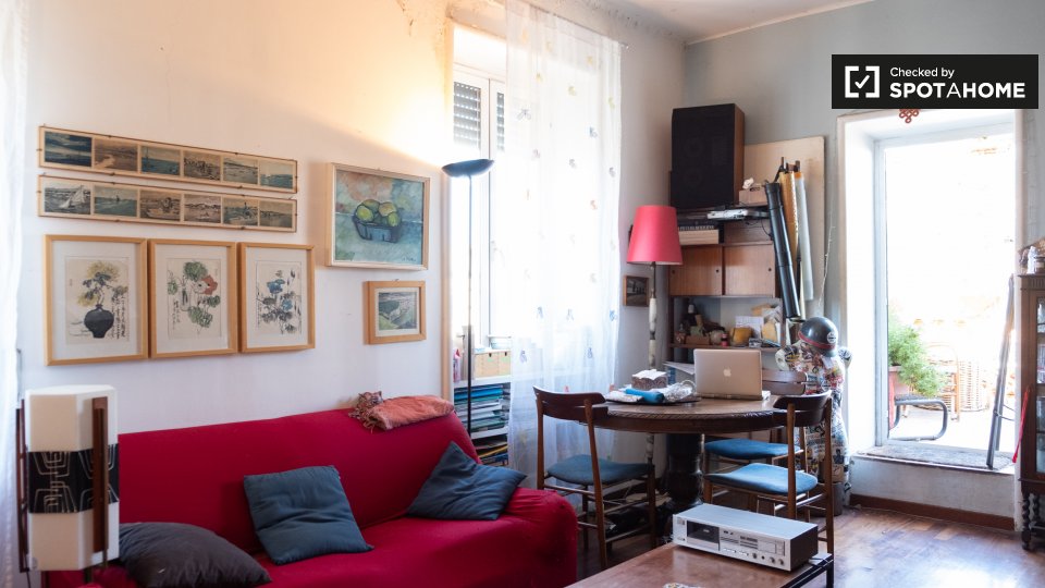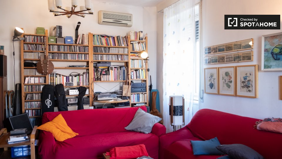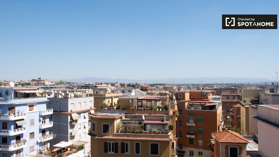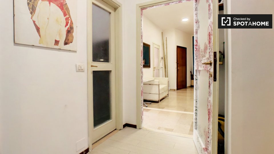 Camere in affitto in appartamento con 2 camere da letto in Via Pietro Cartoni. 4 ° piano La proprietà comprende terrazza. Condividerai questa proprietà con i proprietari residenti, una coppia di professionisti italiani. Abitano al piano di sopra ...