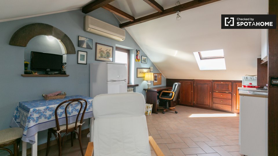** Lo spazio accogliente dello studio. ** _Perché voglio una casa accogliente._ ** Mi piacerà qui? ** Noi la pensiamo così Questa proprietà è compatta, ma è sicuramente impostata wee. Una grande TV, aria condizionata e mobili intelligenti a scompa...