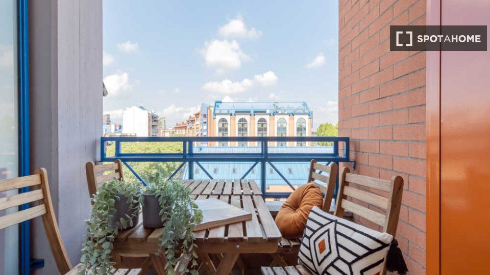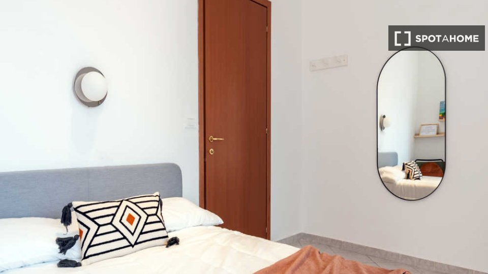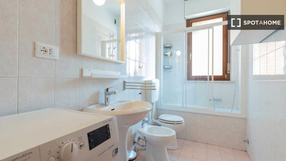 Questa confortevole camera in un appartamento condiviso con 7 camere da letto a Malafede è completamente arredata, dotata di riscaldamento a gas naturale e cucina attrezzata per la vostra comodità. Godetevi l'accesso a un balcone privato e la poss...