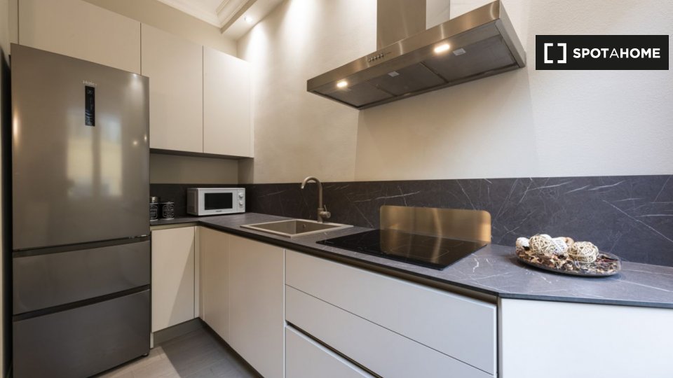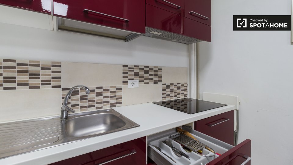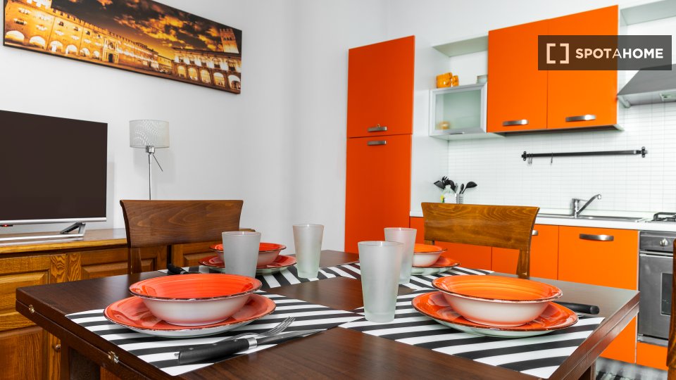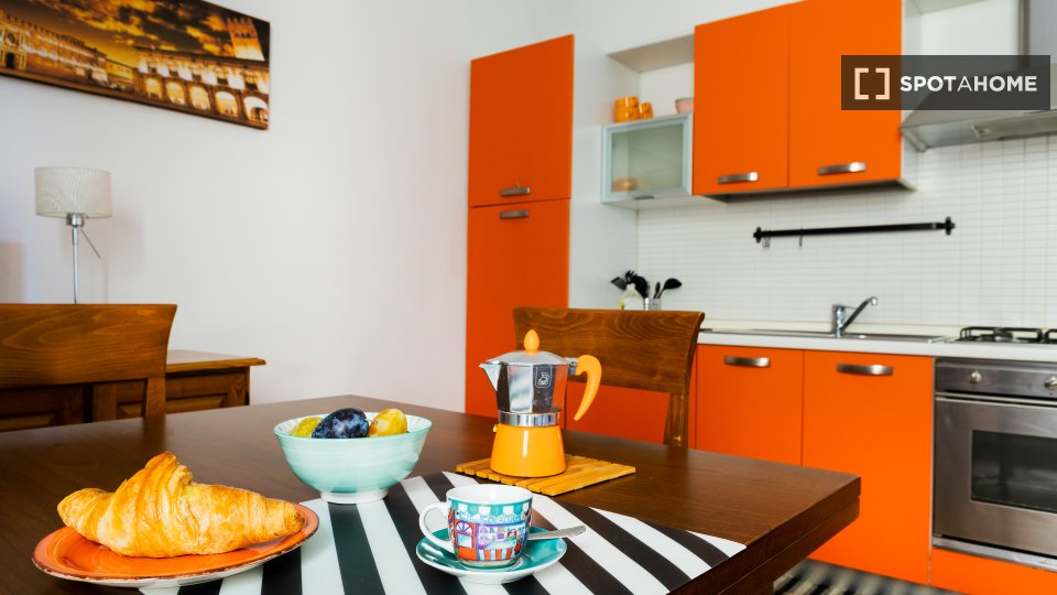 Questo moderno monolocale in Via Susa a Cit Turin misura 28 m² e dispone di una cucina completamente attrezzata. C'è una zona giorno e notte arredata con un grande divano comodo per rilassarsi e guardare la TV che può essere trasformata nel vostro...