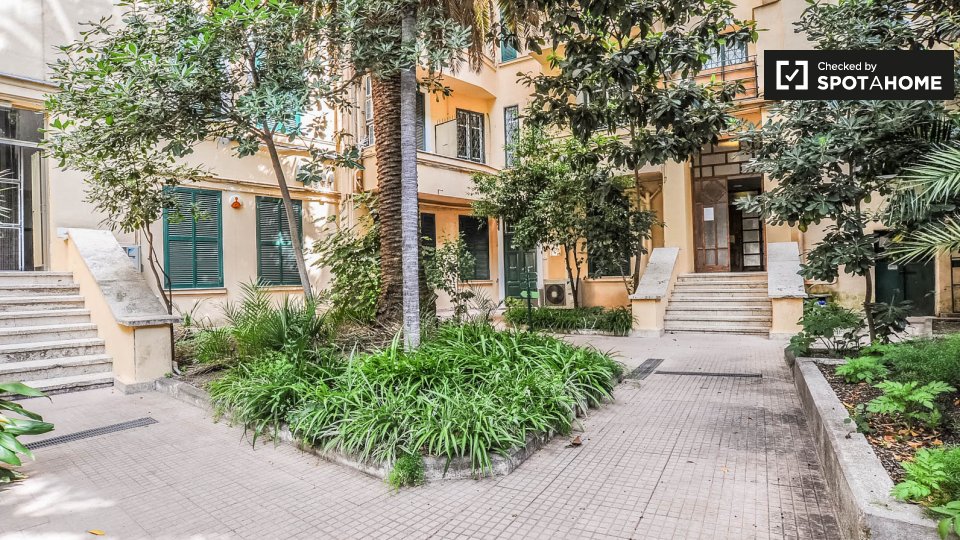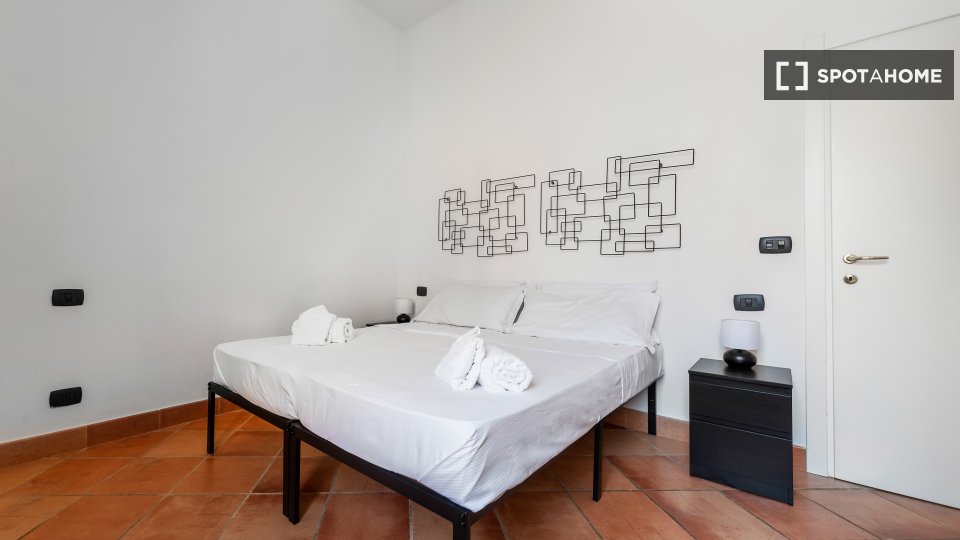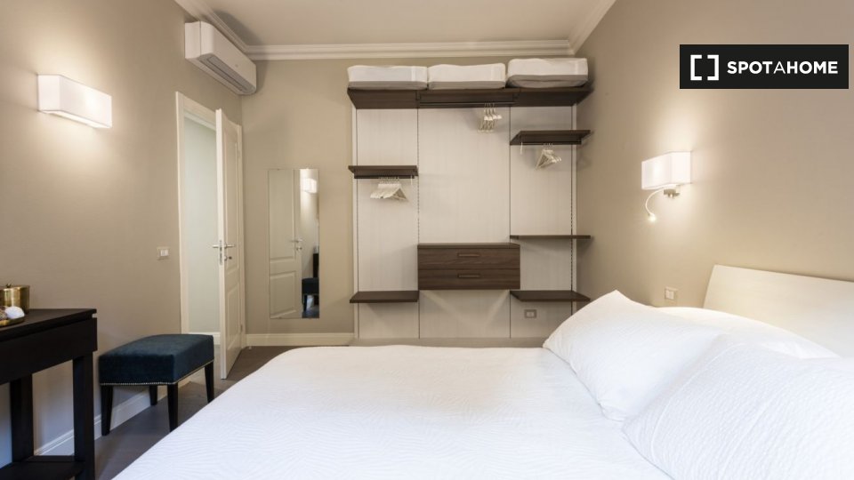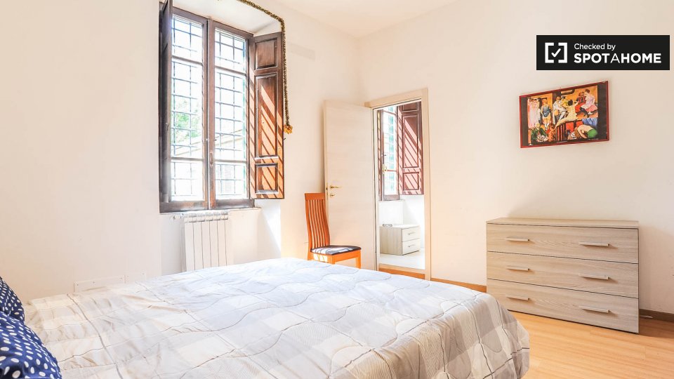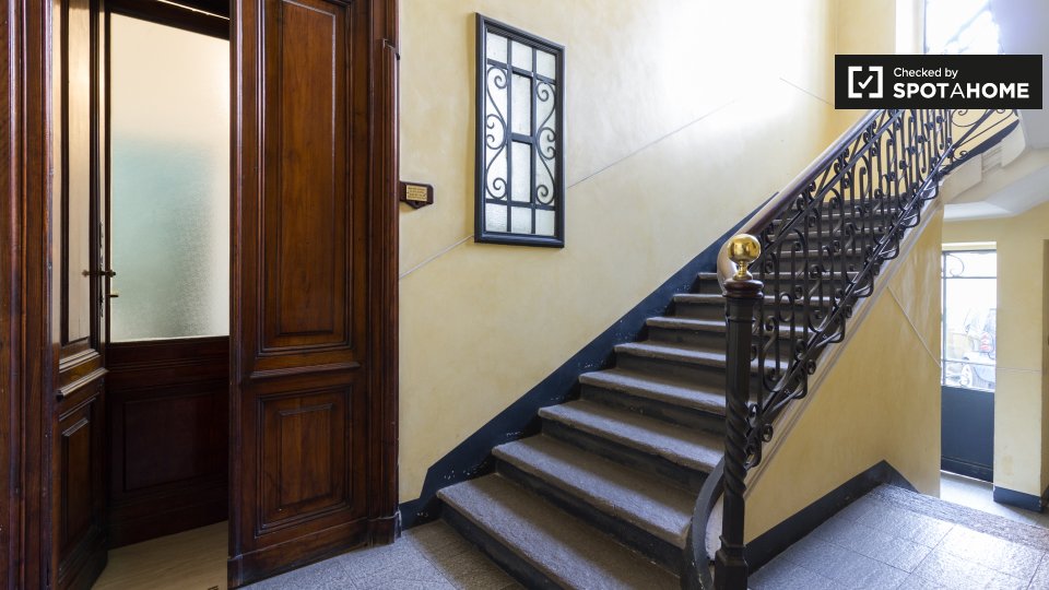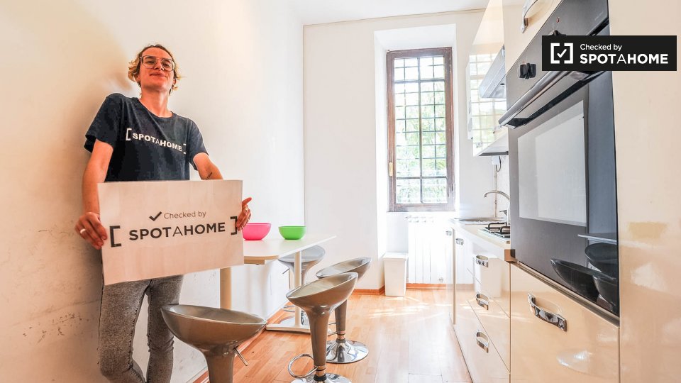 Questo appartamento con 2 camere da letto situato nel quartiere Prati dispone di camere disponibili per il noleggio. La principale area condivisa è la cucina attrezzata che riceve un sacco di sole e viene fornito con un bar Brekfast. C'è pavimenti...