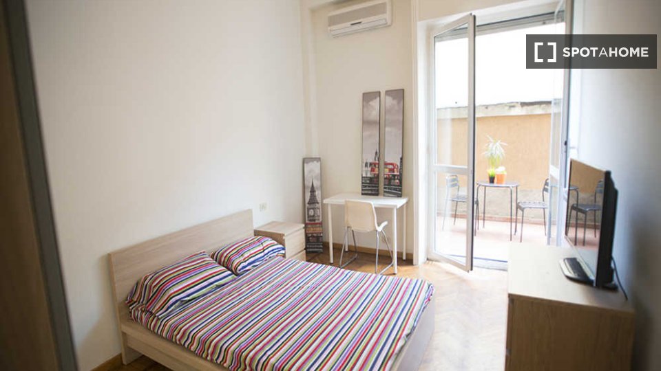 Questa stanza esterna in un appartamento condiviso con 3 camere da letto è disponibile per l'affitto nella zona di Monteverde Nuovo, Quartiere Gianicolense, a Roma. L'appartamento è completamente arredato e include servizi essenziali come lavatric...