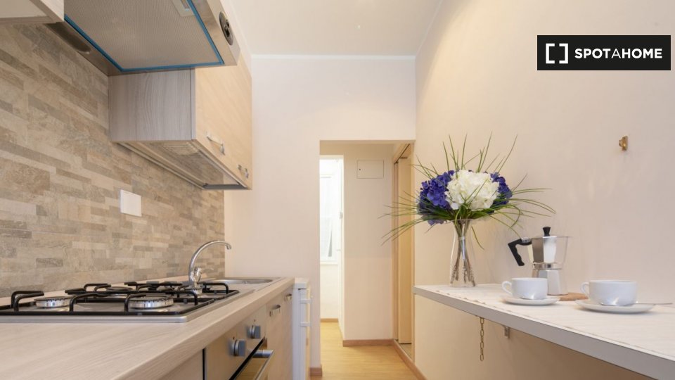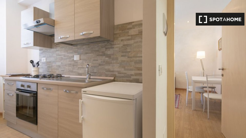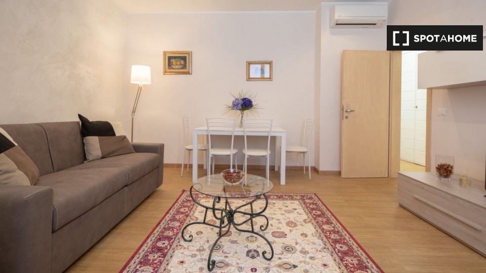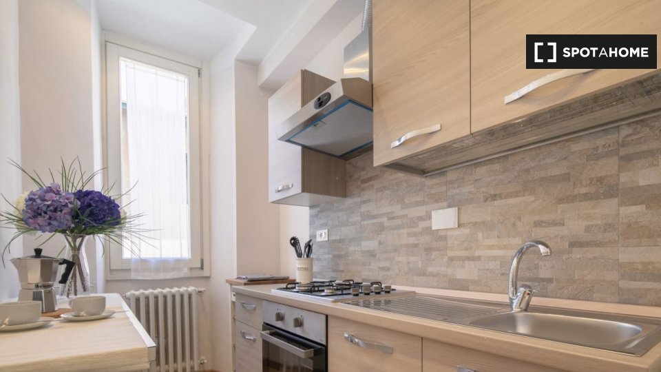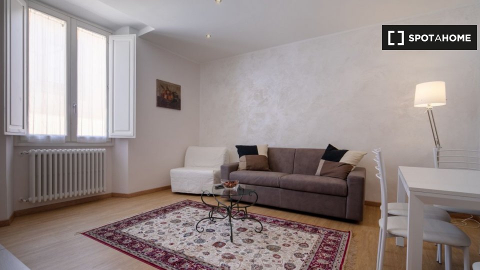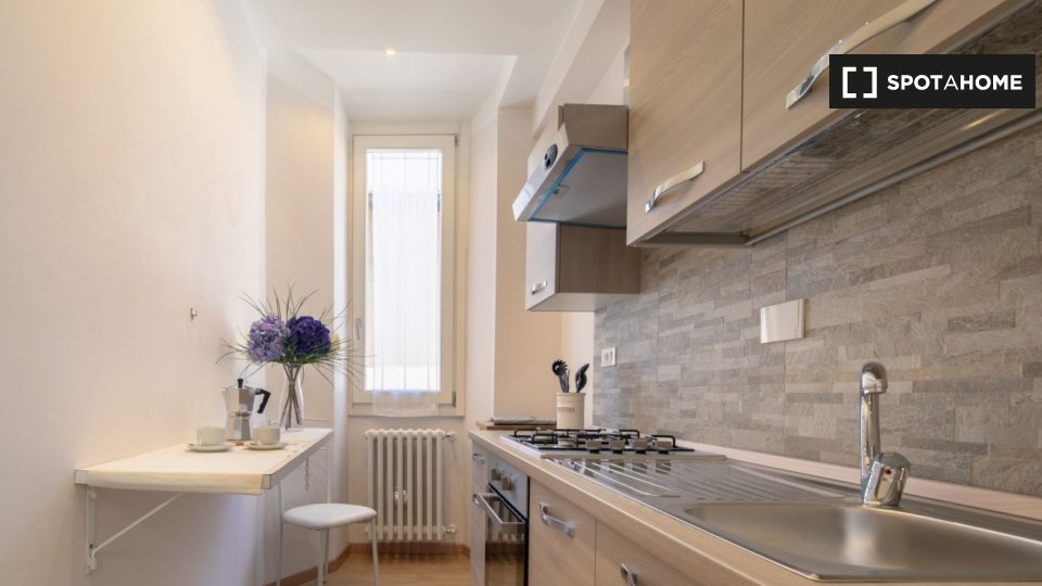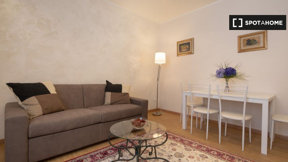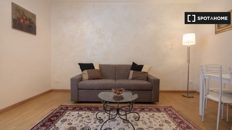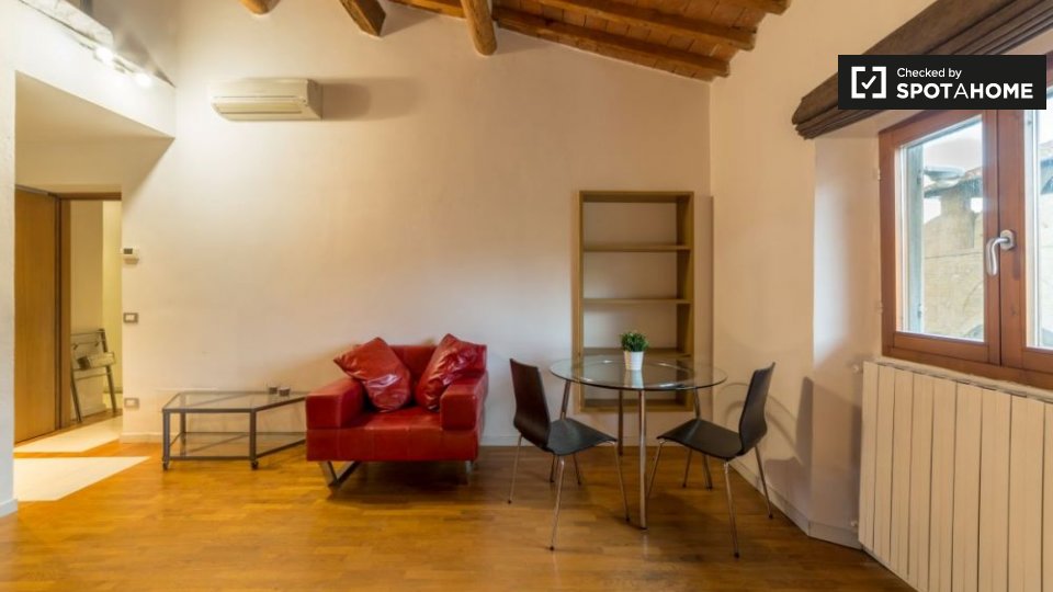 Appartamento arredato con 1 camera da letto in affitto in Via Delle Oche. L'immobile si trova al 1 ° piano di un palazzo senza ascensore. Completano la proprietà aria condizionata e lavatrice.