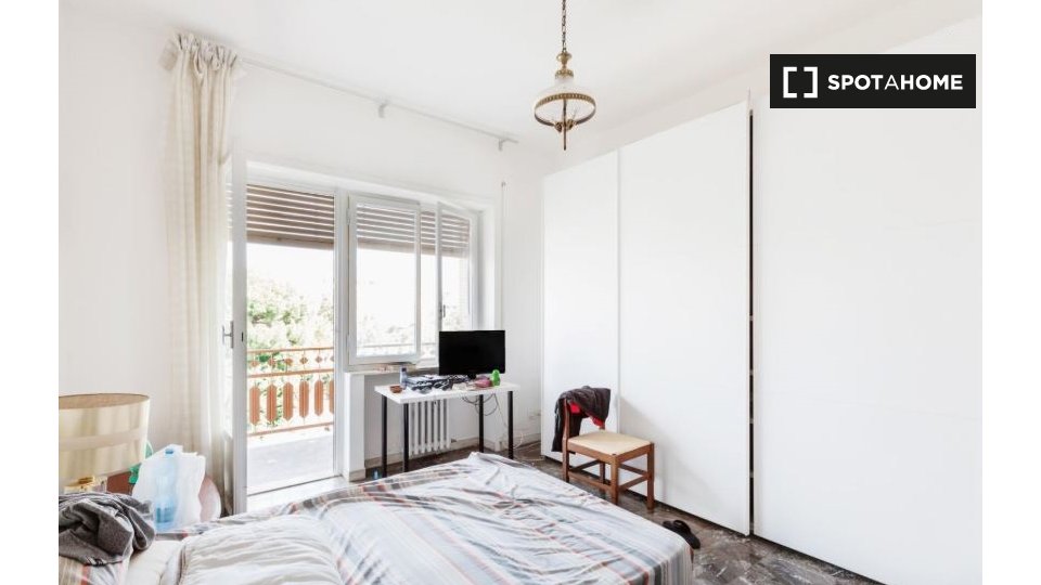 Scopri questa fantastica camera in un appartamento condiviso con 3 camere da letto situato a Montesignano, Genova. La camera è completamente arredata e include l'accesso a una lavatrice privata, una cucina attrezzata e un balcone. Gli animali dome...