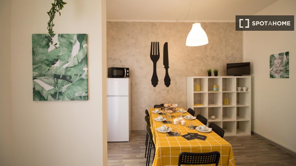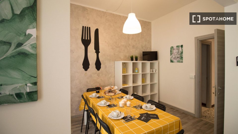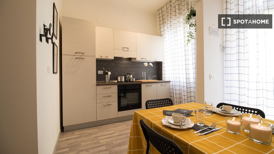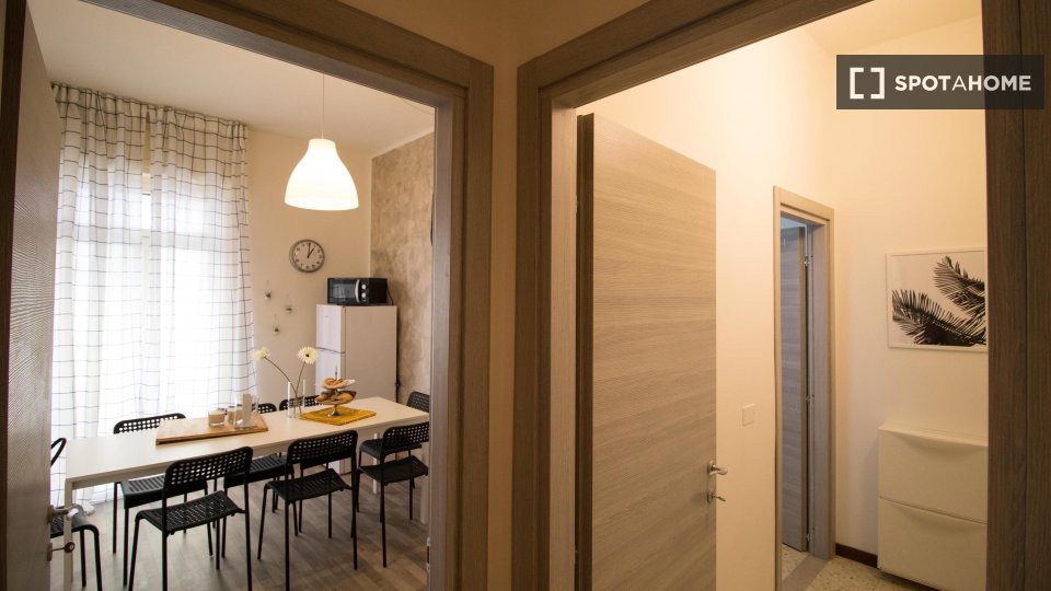 Scopri questo grazioso appartamento con una camera da letto a Lodi-Corvetto, Milano. Completamente arredato e dotato di aria condizionata centralizzata, cucina attrezzata e lavatrice privata, rappresenta una soluzione abitativa ideale per professi...