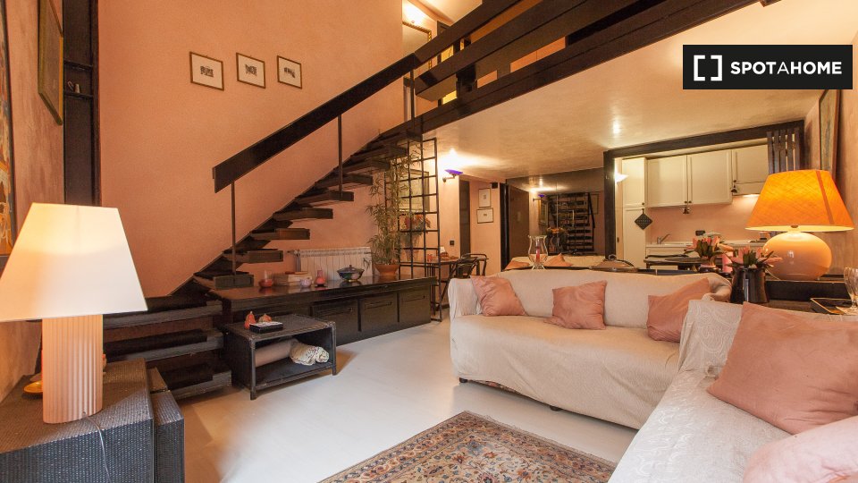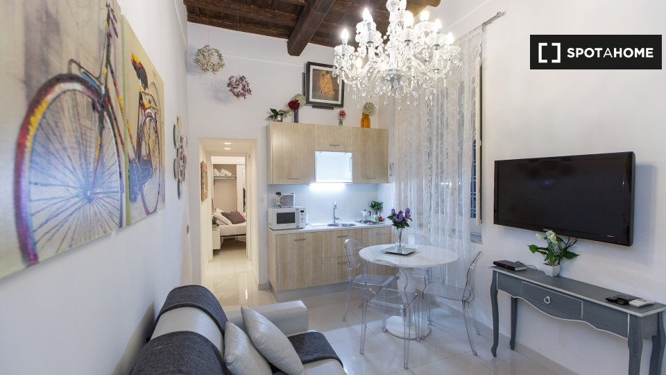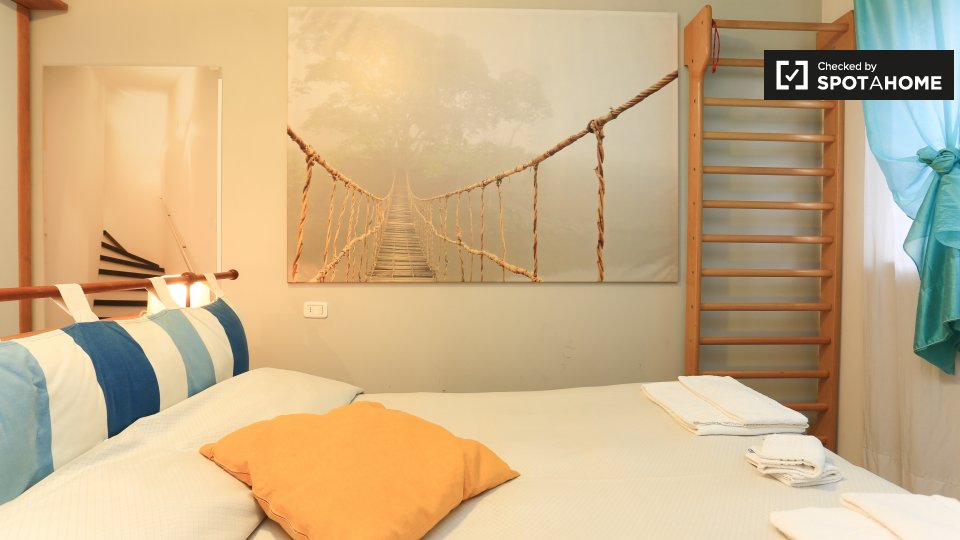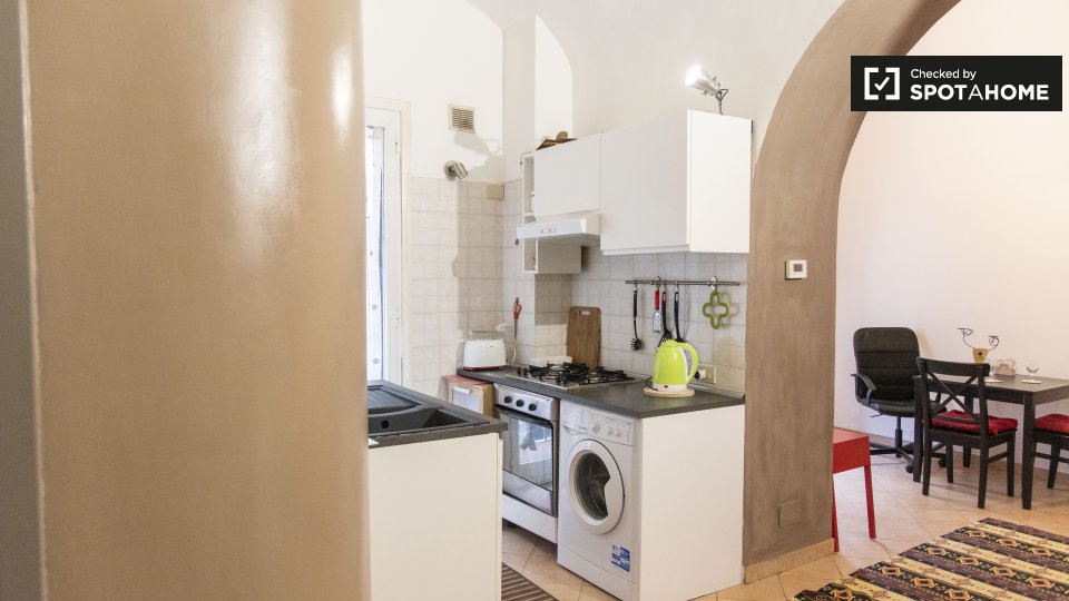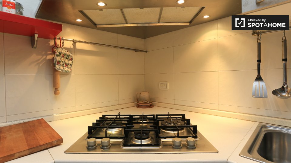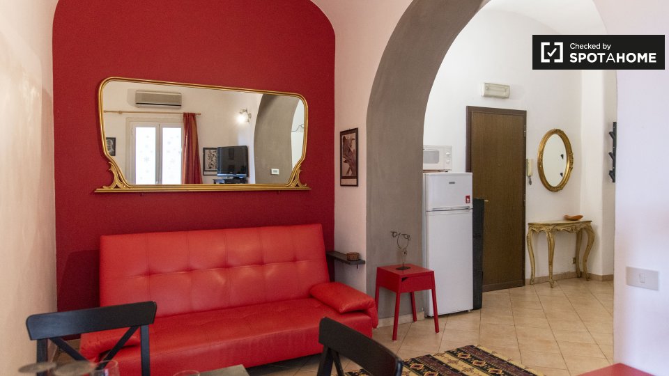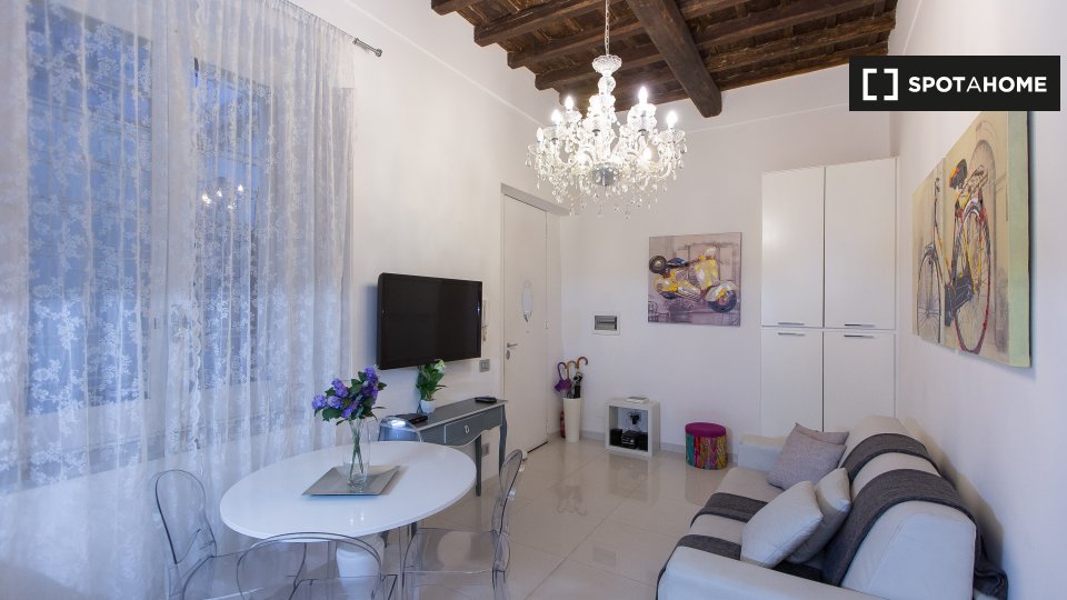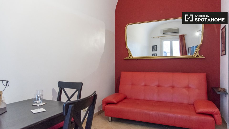 Questo appartamento arredato con una camera da letto nell'incantevole quartiere di Trastevere è dotato di aria condizionata individuale e riscaldamento a gas naturale. Godetevi la comodità di un ascensore e di una cucina attrezzata. Il WiFi è incl...