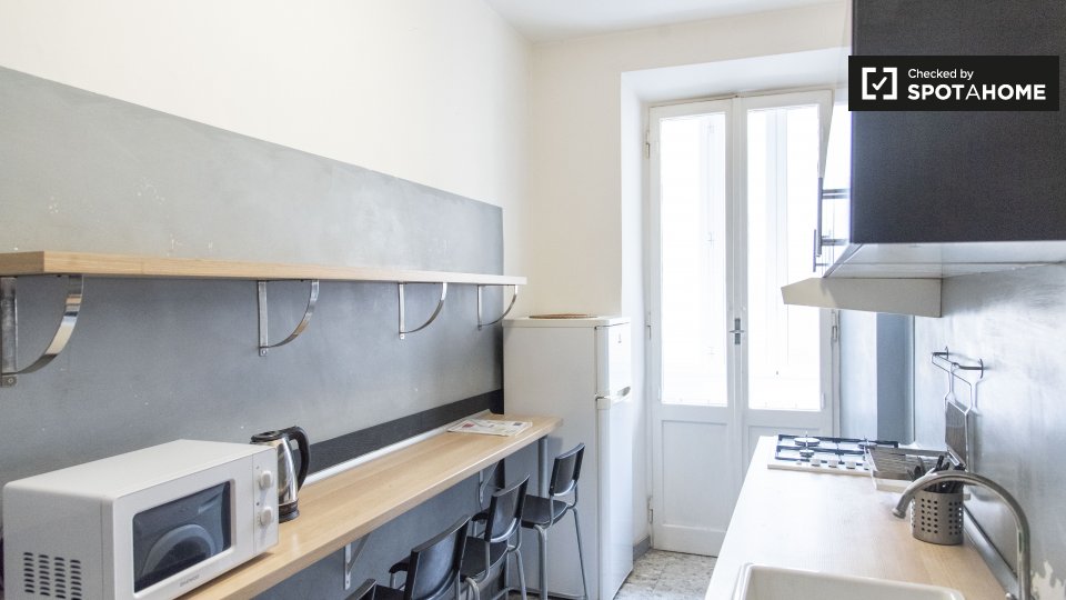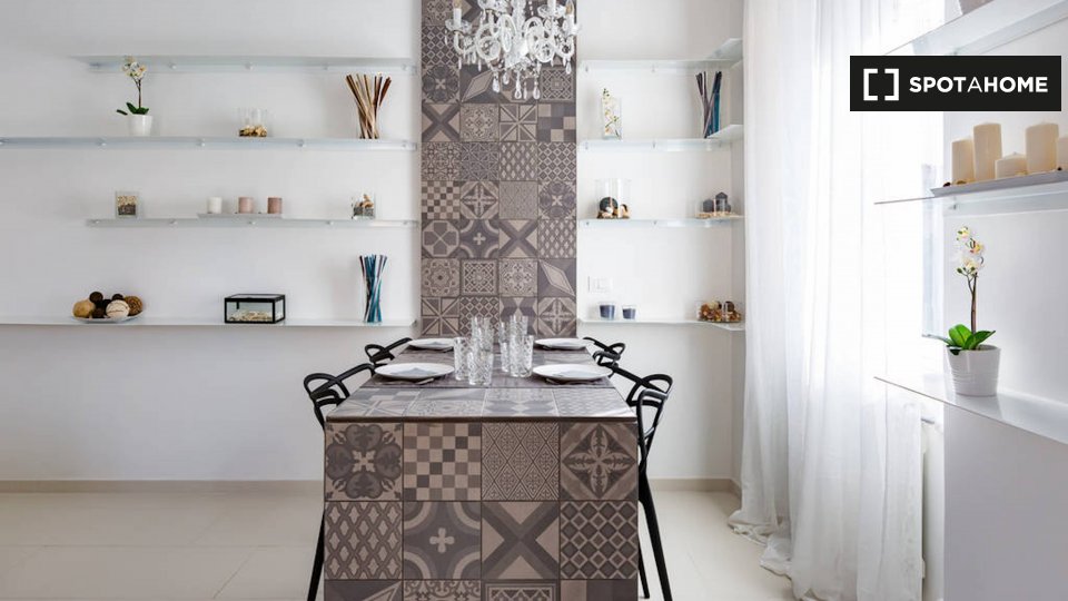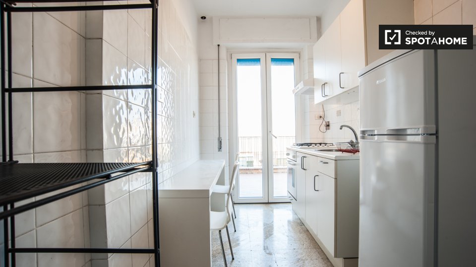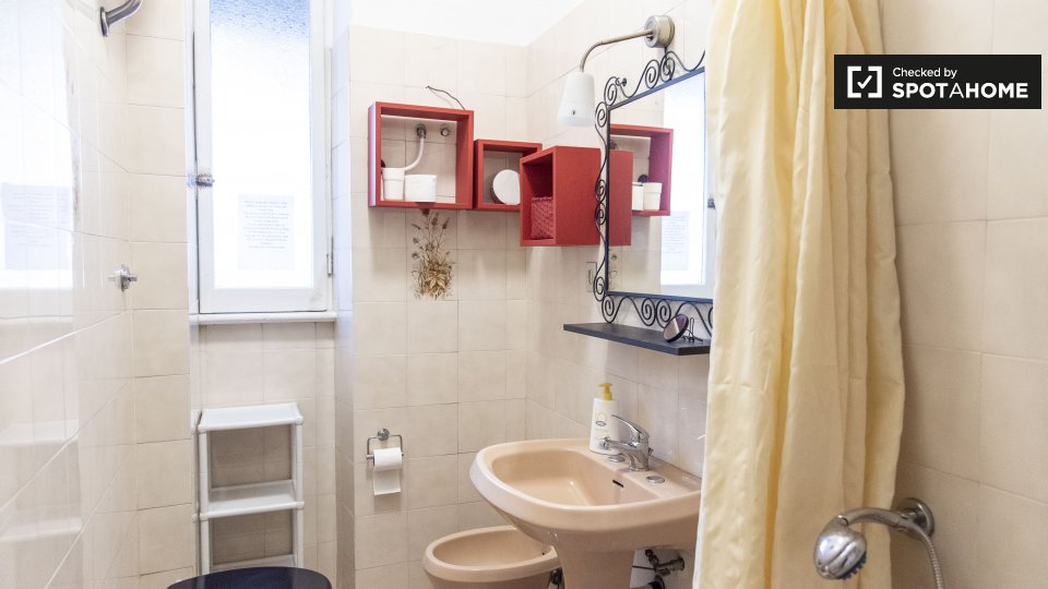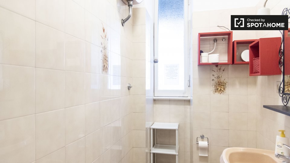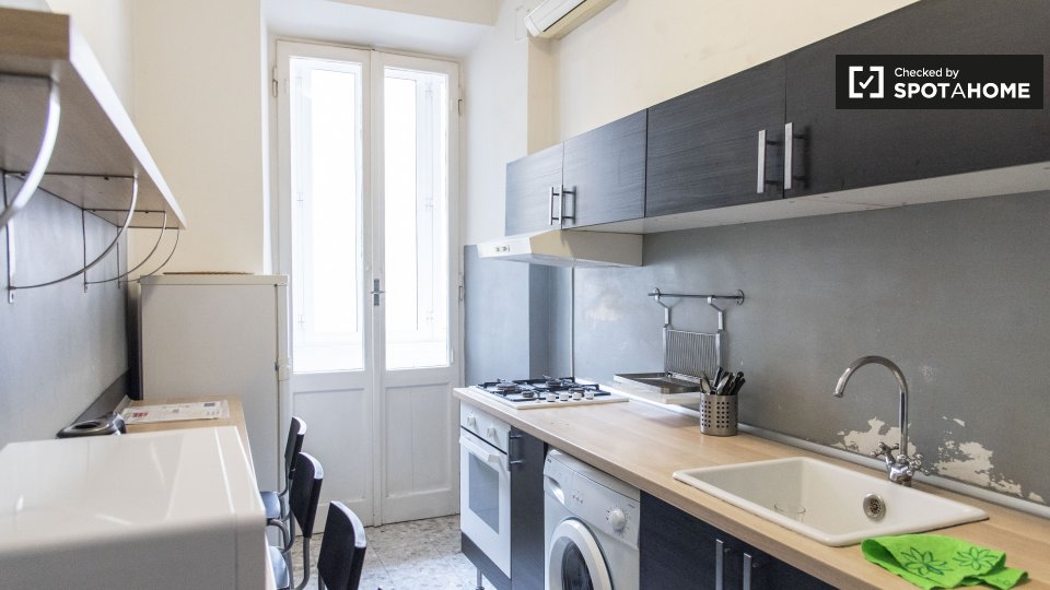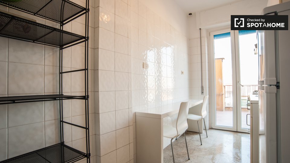 Le camere in affitto in questo appartamento con 2 camere da letto si trovano in Appio Latino. C'è un bagno in comune e cucina in comune. Non c'è un salotto, ma la cucina ha un bancone con quattro posti. È anche completamente attrezzato.