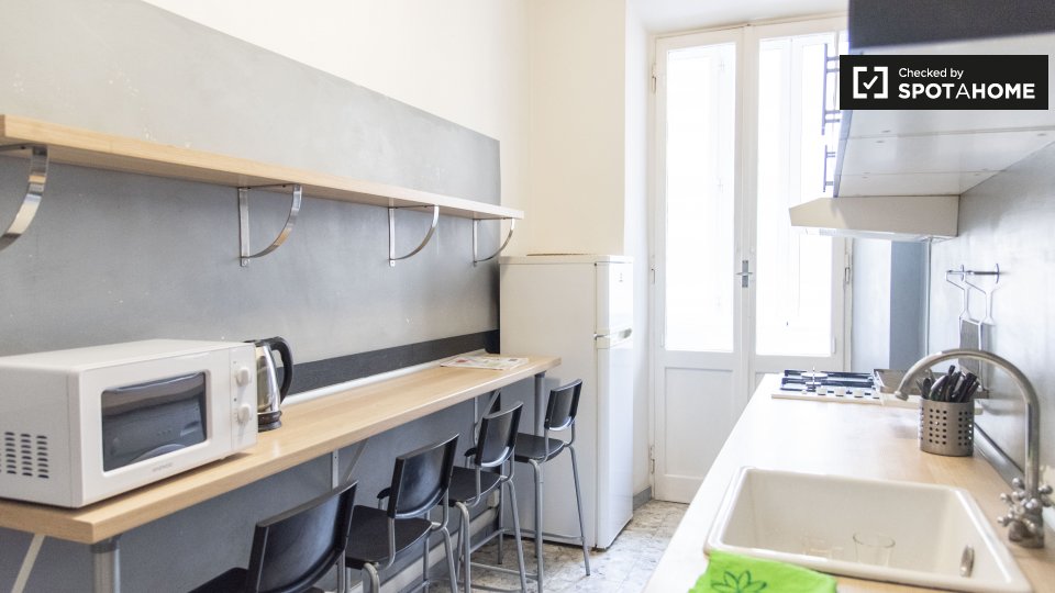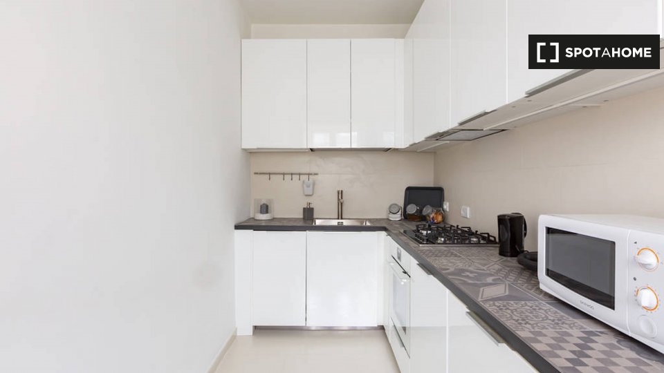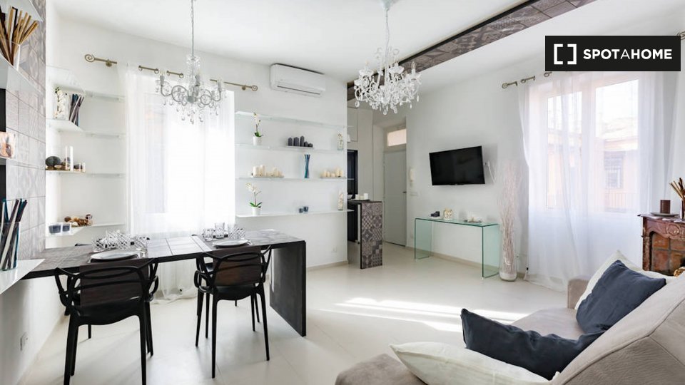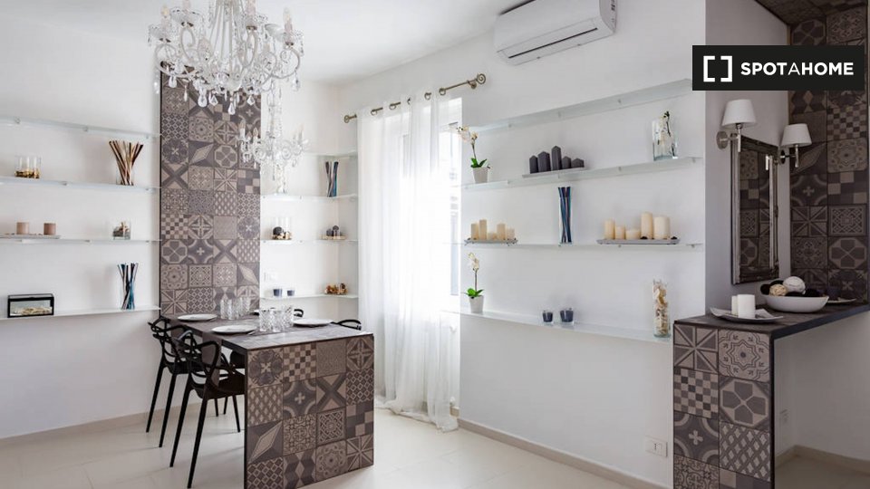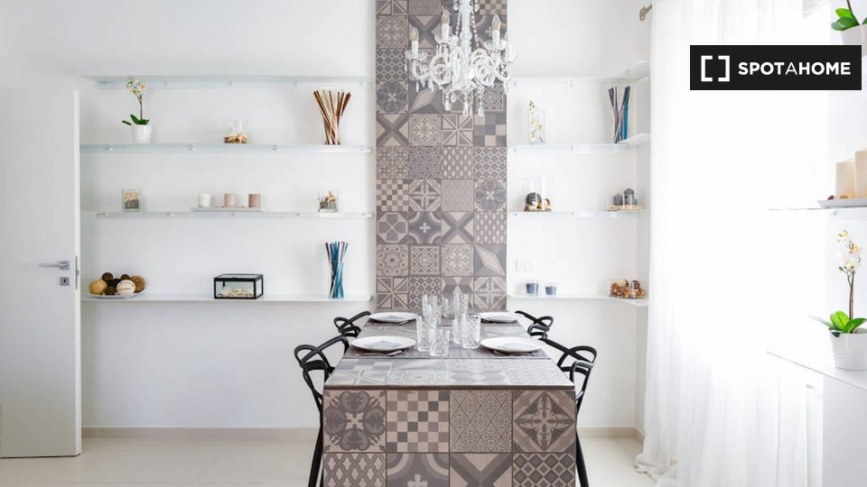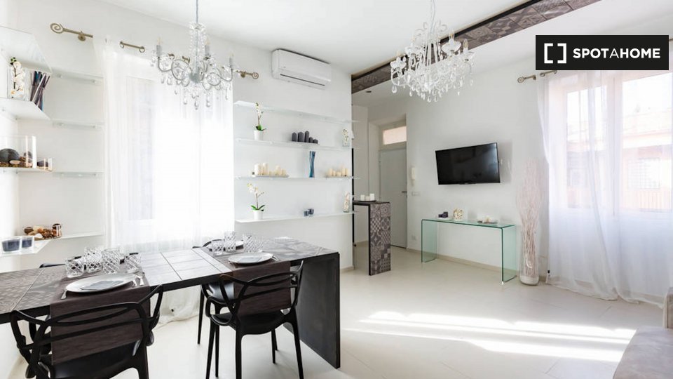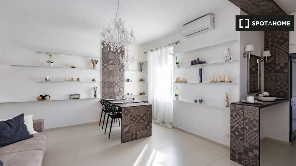 Le camere in affitto in questo appartamento con 2 camere da letto si trovano in Appio Latino. C'è un bagno in comune e cucina in comune. Non c'è un salotto, ma la cucina ha un bancone con quattro posti. È anche completamente attrezzato.