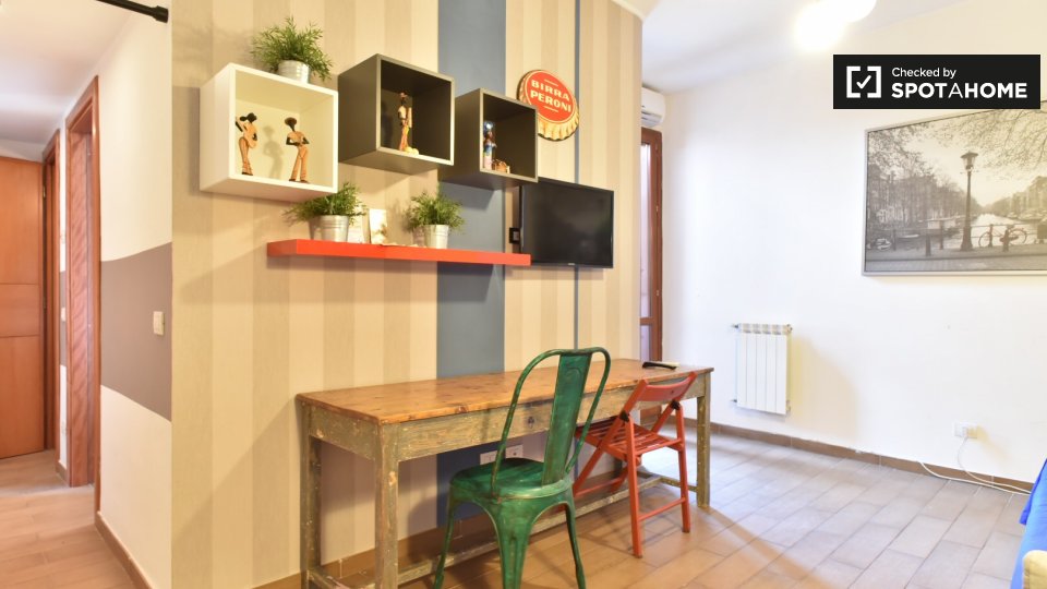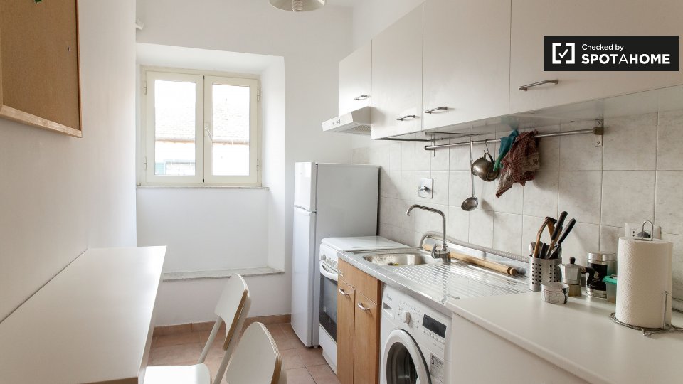 Esplora questo accogliente appartamento con 2 camere da letto in affitto al Pigneto, Roma. Completamente arredato e dotato di lavatrice privata, Wi-Fi e cucina attrezzata. È consentito fumare, adatto a professionisti, coppie, famiglie, studenti e ...