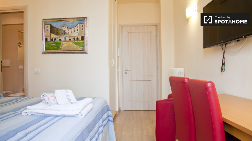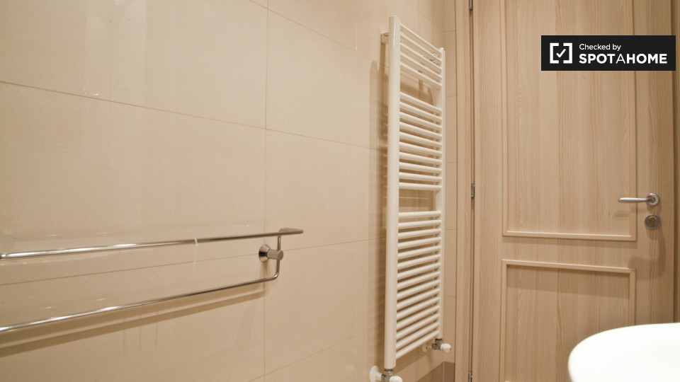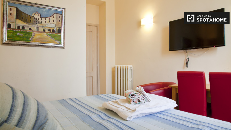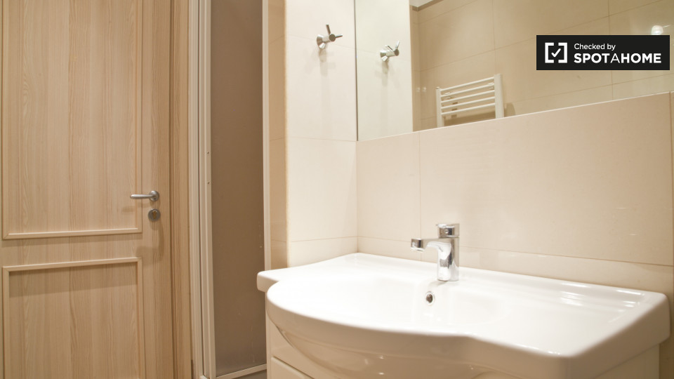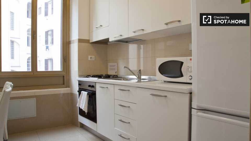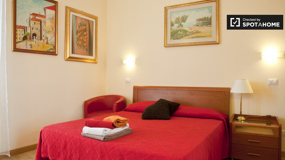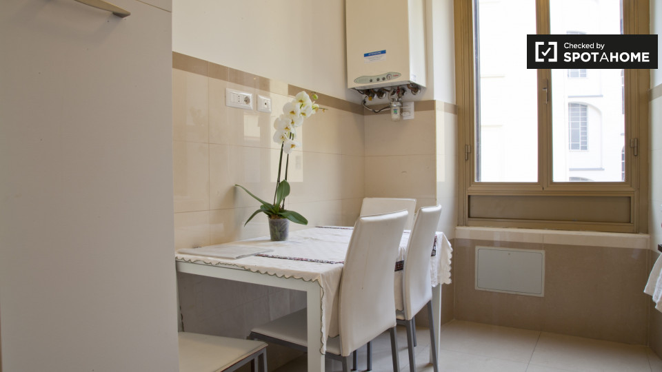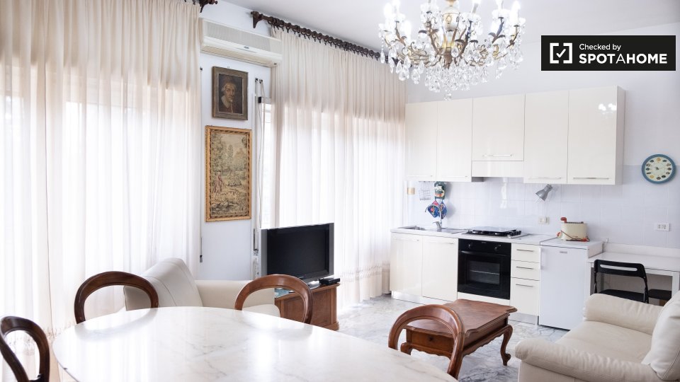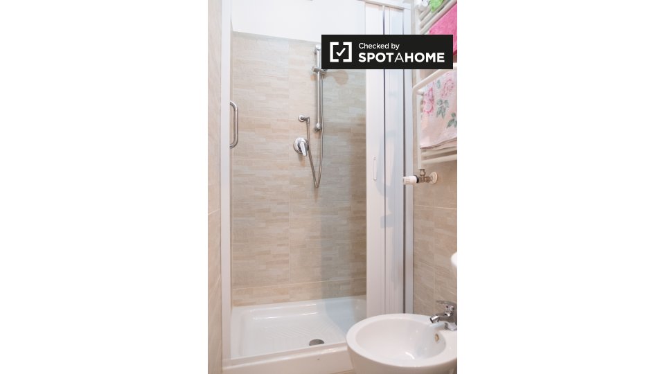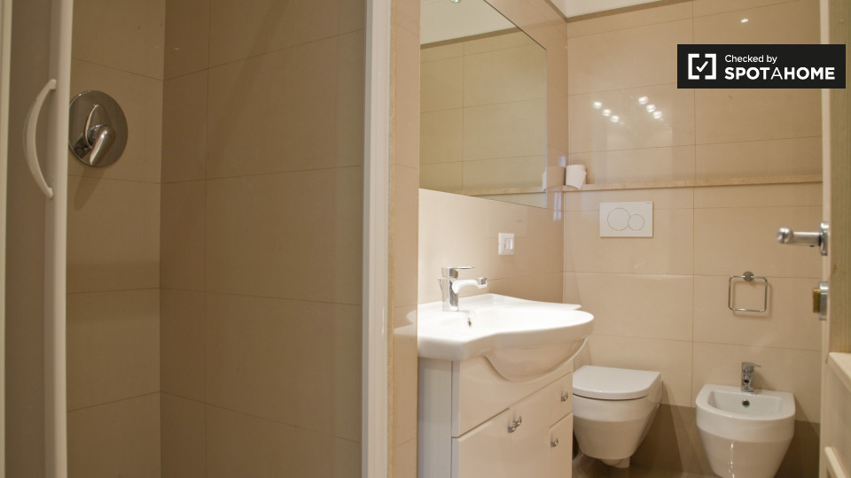 camere con bagno sono disponibili a noleggio in un appartamento con 3 camere da letto a Roma. La struttura, si sente luminoso, e ha soffitti alti che rendono la sua m² 75 sembrano molto spaziosa. L'appartamento è molto elegante, decorata in uno sc...