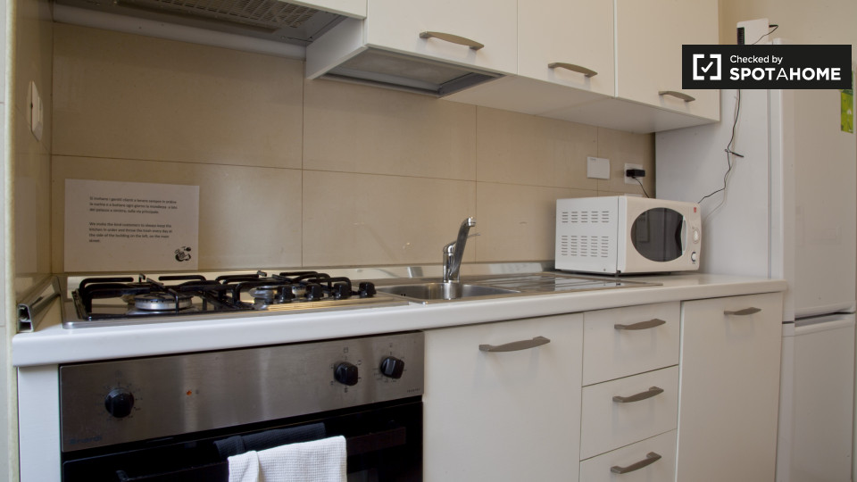 Scopri un'accogliente camera condivisa in un appartamento con 4 camere da letto a Centocelle. L'alloggio è completamente arredato e include una lavatrice privata, riscaldamento a gas metano e una cucina ben attrezzata con forno. Un balcone privato...