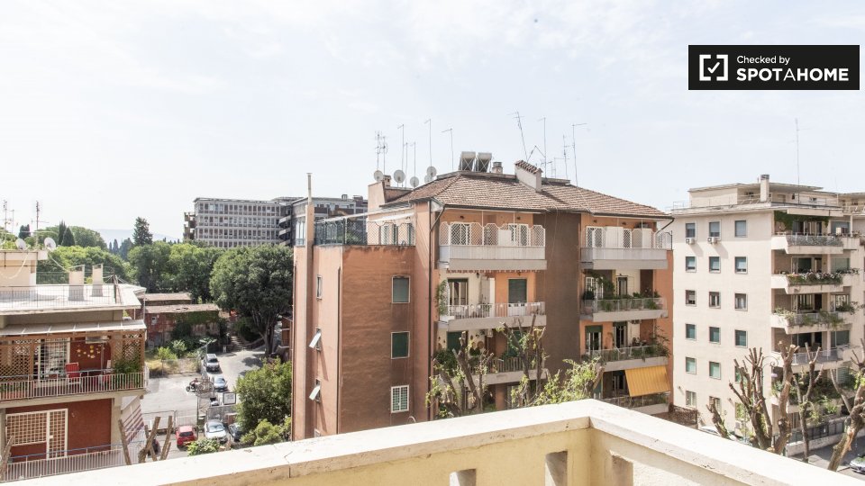 Affittasi stanze in appartamento ammobiliato con 3 camere da letto in Viale Ippocrate. L'immobile si trova al 5° piano di un edificio dotato di ascensore. Completano la proprietà aria condizionata e balcone.