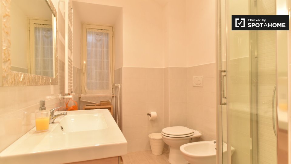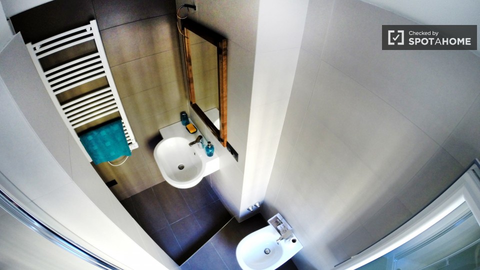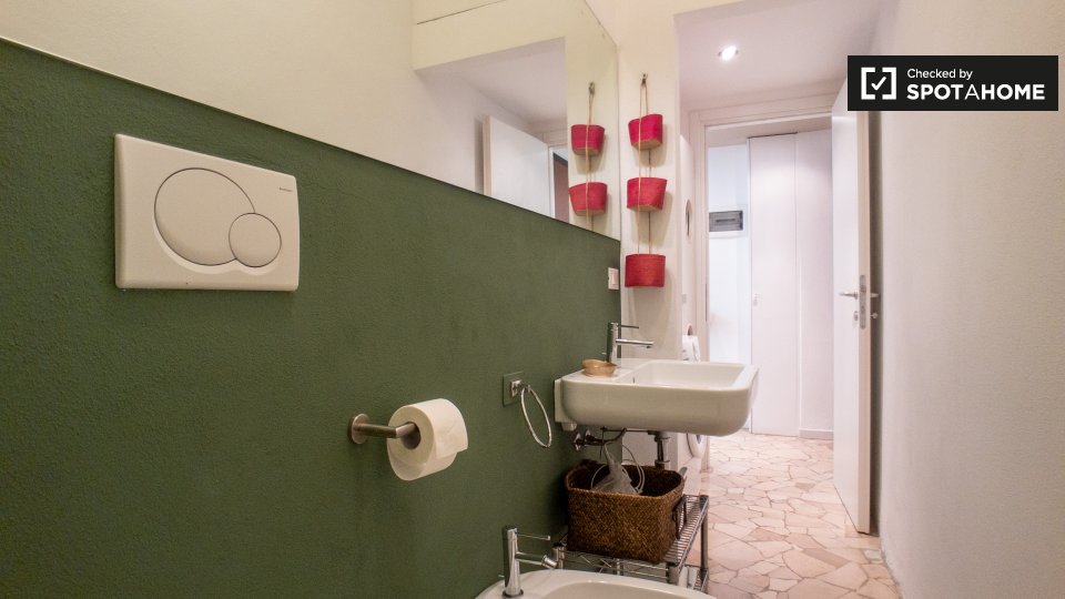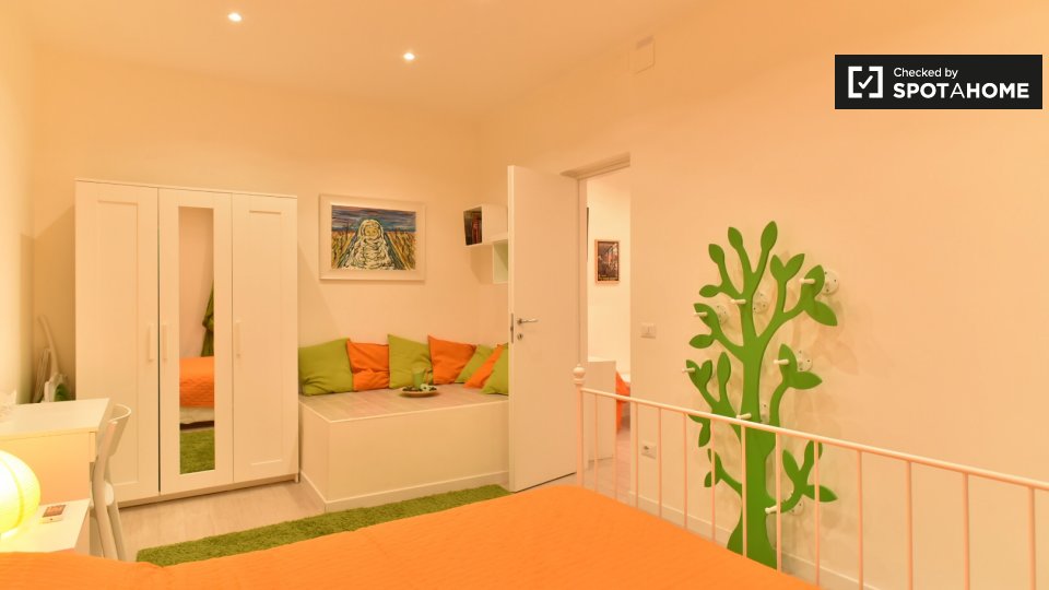Svegliatevi ogni mattina in questa camera splendidamente arredata in un appartamento condiviso con 6 camere da letto situato in zona Duomo, a Milano. L'appartamento offre comfort moderni come lavatrice, asciugatrice, lavastoviglie e una cucina att...