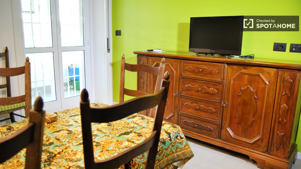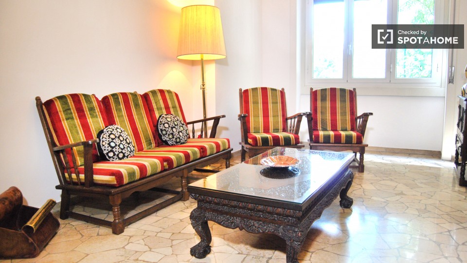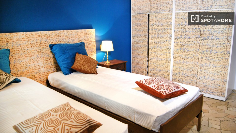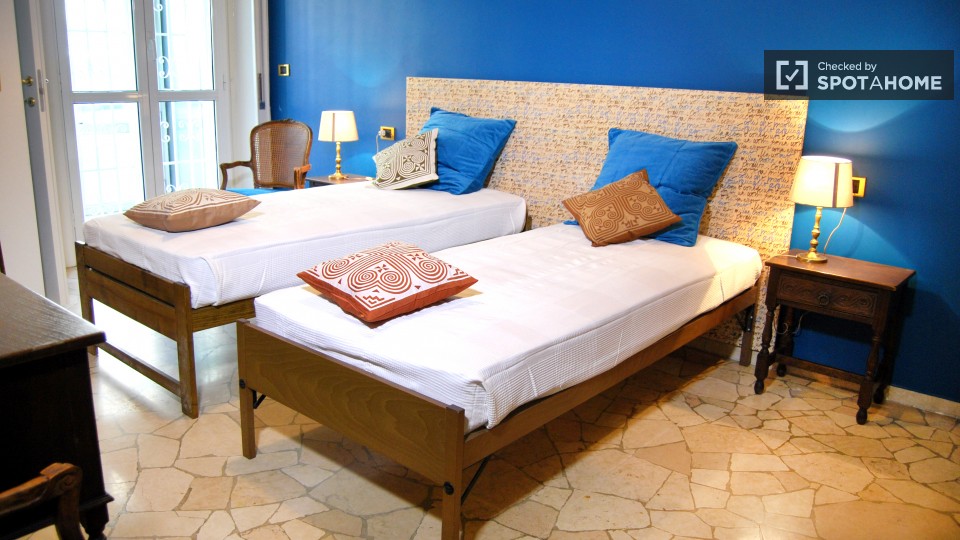 Le camere sono disponibili a noleggio in questo luminoso e colorato 3 appartamento a San Giovanni. L'appartamento ha una splendida vista sulla strada dalla parte anteriore e il verde, alberato cortile dalla parte posteriore, dove è possibile rilas...
