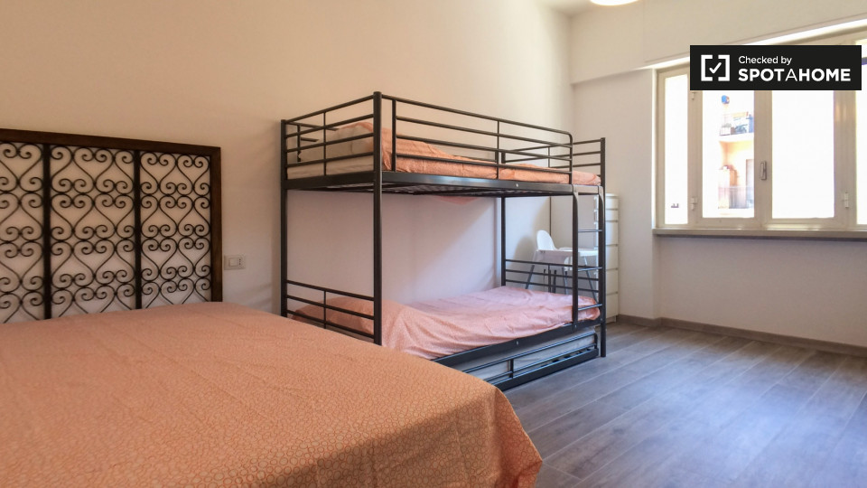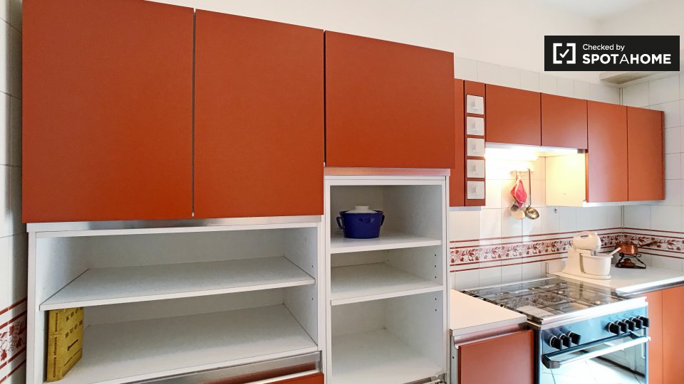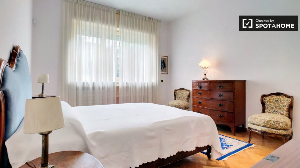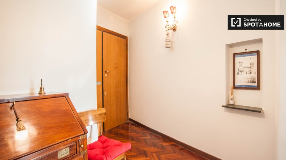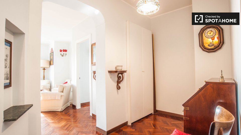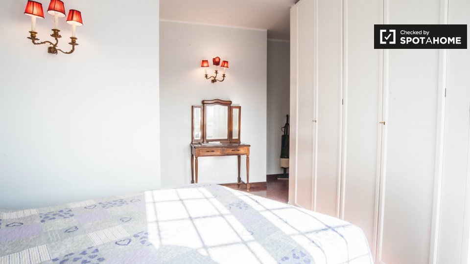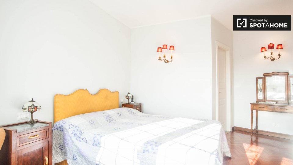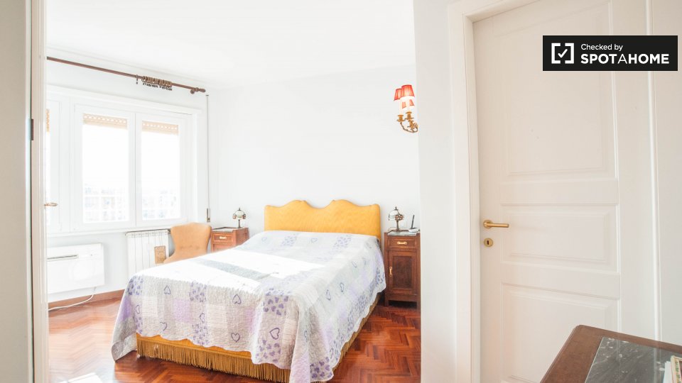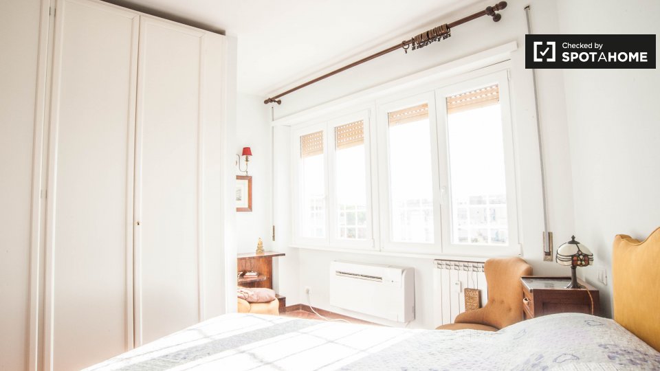 Cerchi un posto comodo e pratico in cui soggiornare? Questa è una spaziosa camera in un appartamento condiviso con 4 camere da letto situato a Monteverde Nuovo Quartiere Gianicolense, Roma. L'appartamento è arredato, dispone di una cucina attrezza...