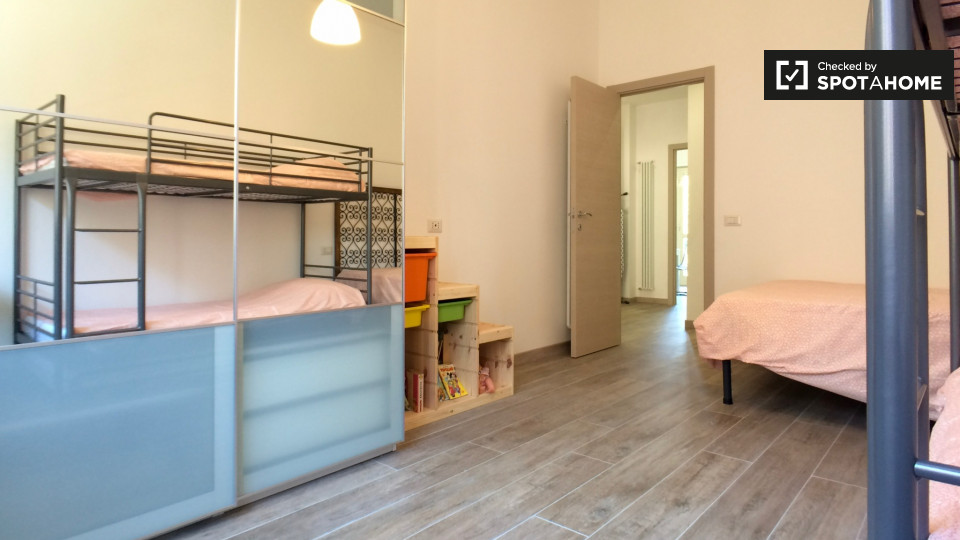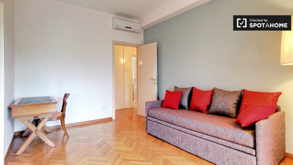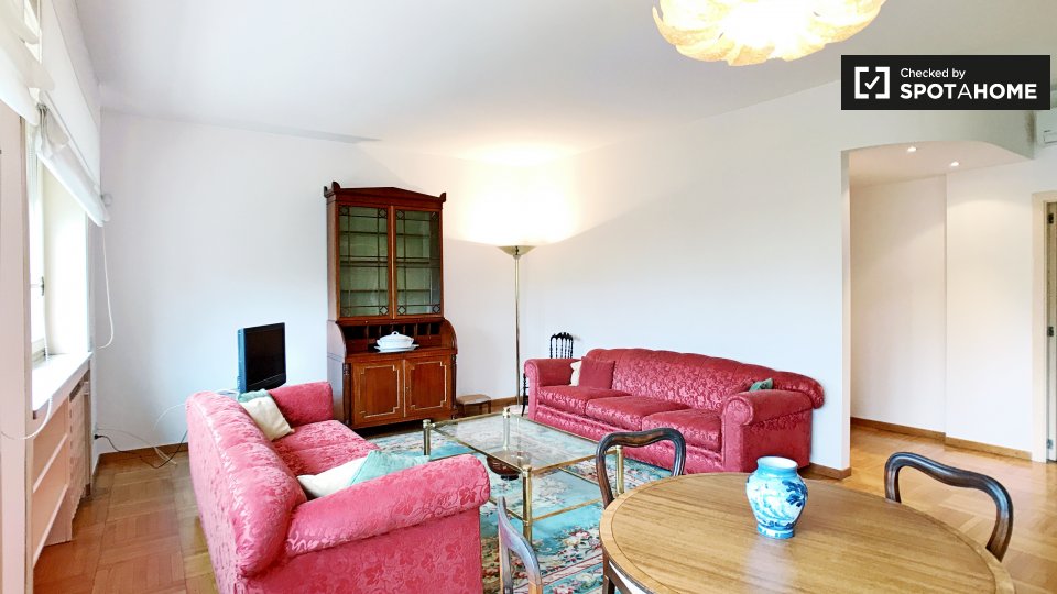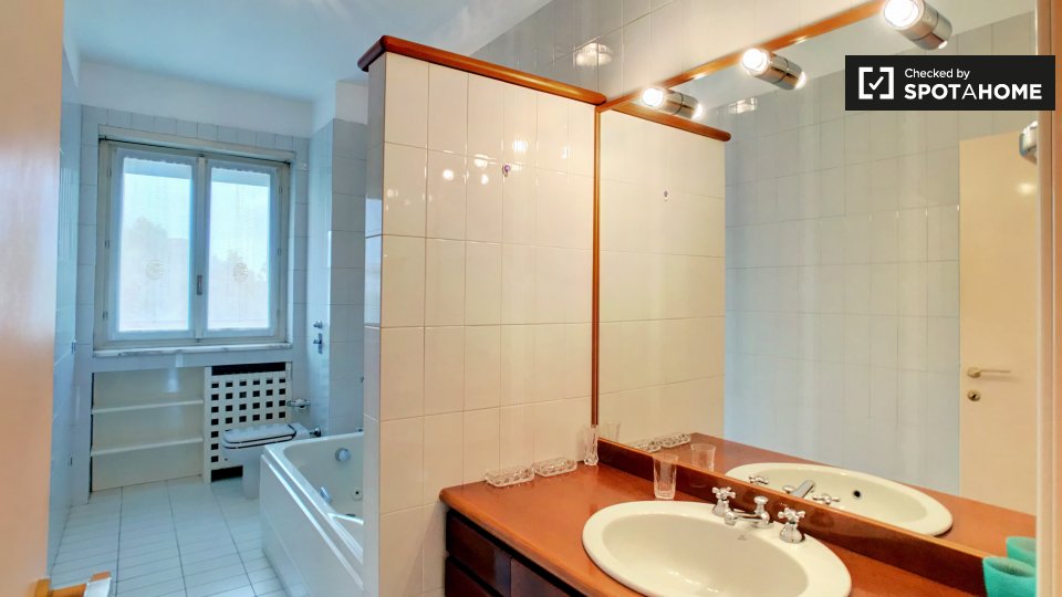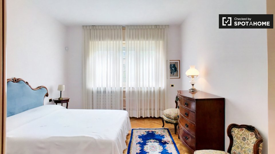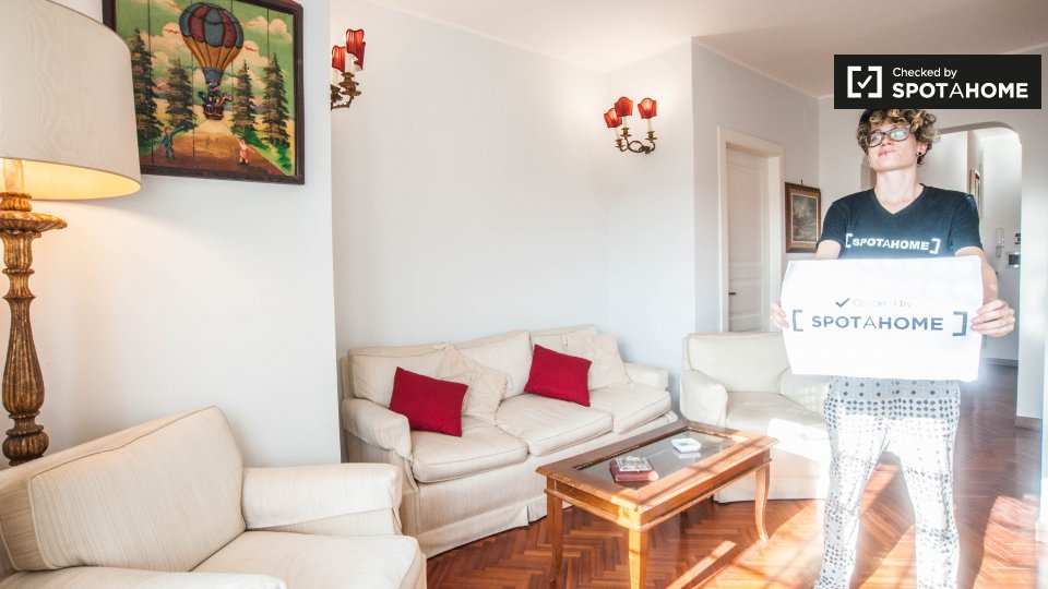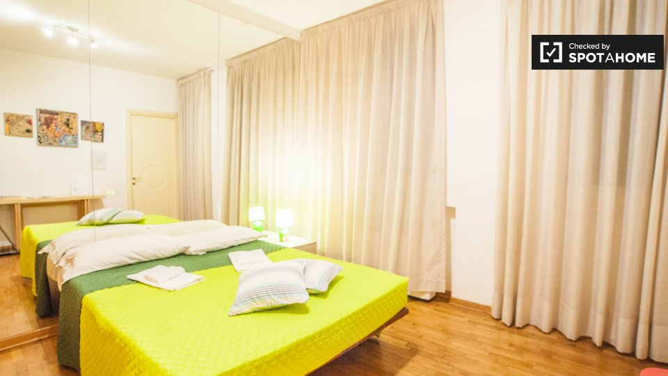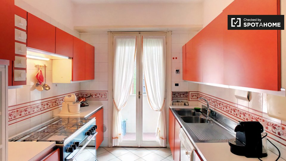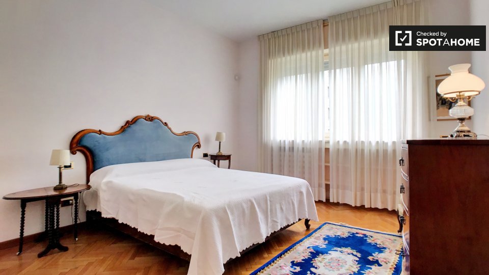 Cerchi un posto comodo e pratico in cui soggiornare? Questa è una spaziosa camera in un appartamento condiviso con 4 camere da letto situato a Monteverde Nuovo Quartiere Gianicolense, Roma. L'appartamento è arredato, dispone di una cucina attrezza...