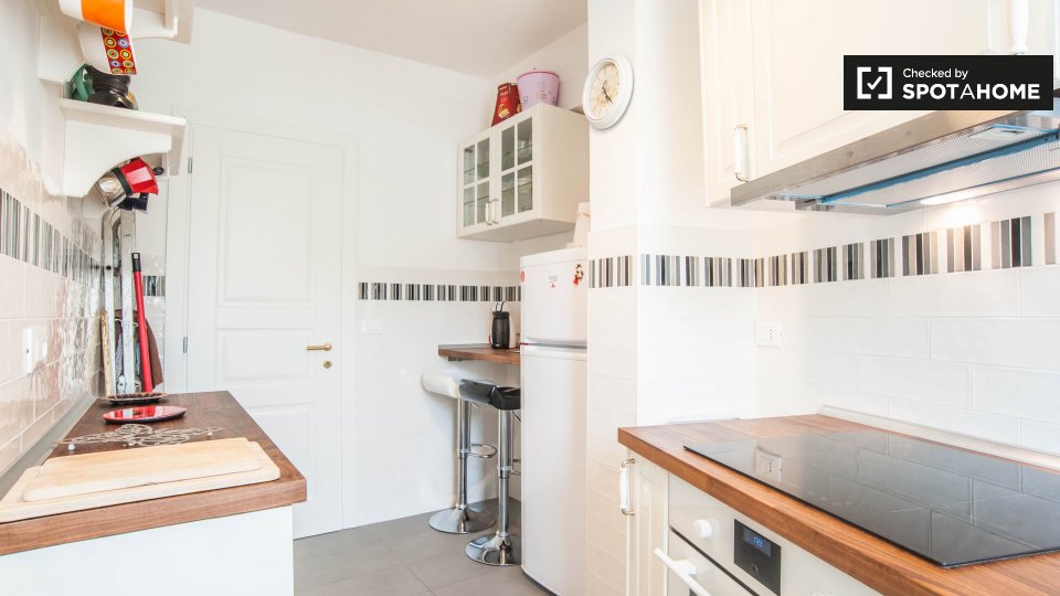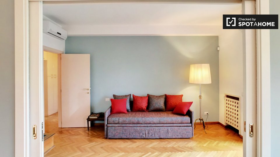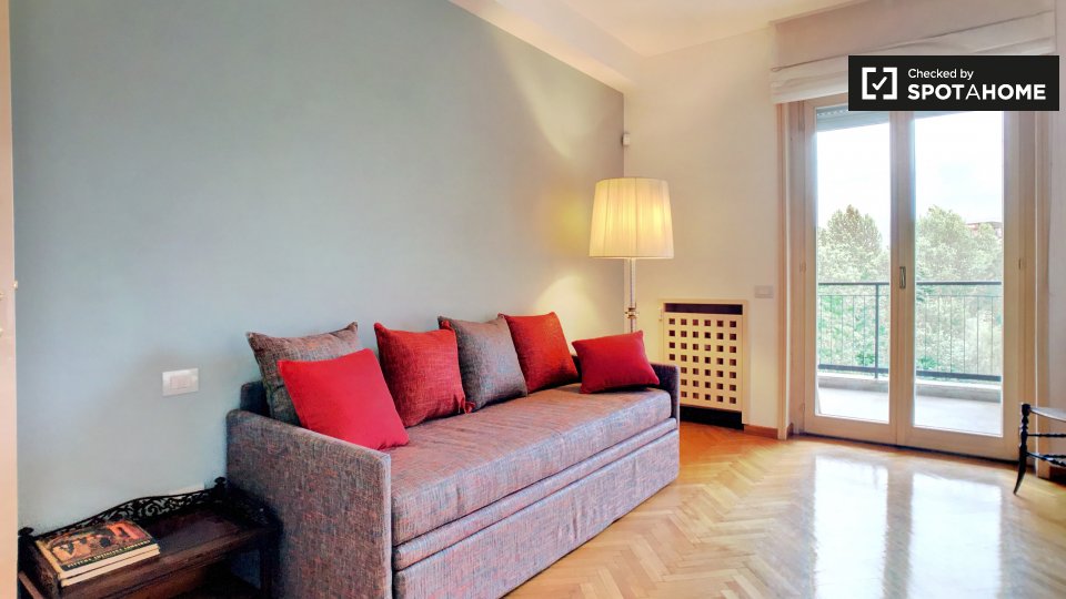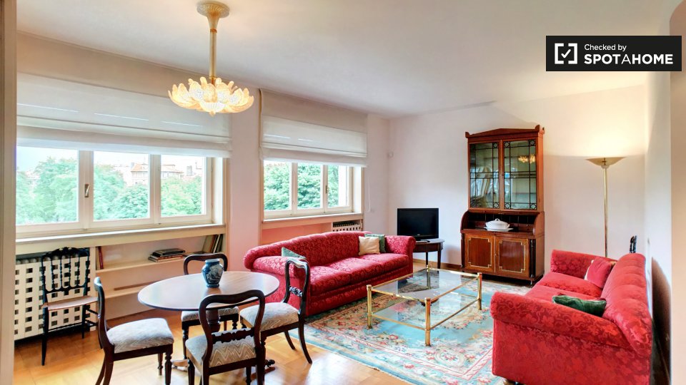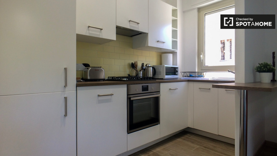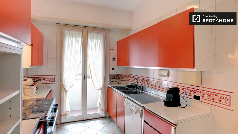 Questo spazioso appartamento con 2 camere da letto in affitto su Via Vincenzo Monti si trova al 5 ° piano. Ha 2 bagni, che rende la vita più facile. E se lavori da casa o hai bisogno di un letto aggiuntivo, adorerai la piccola sala studio. La cuci...
