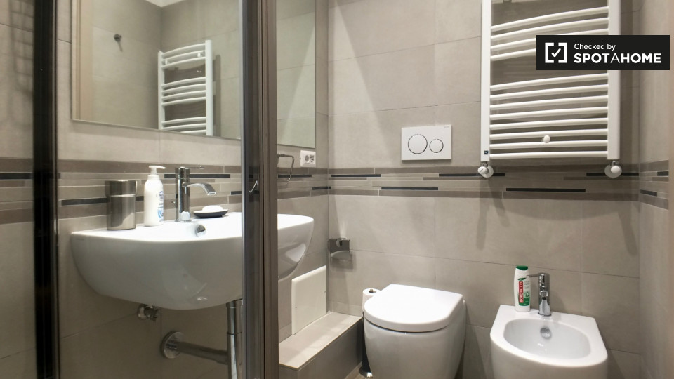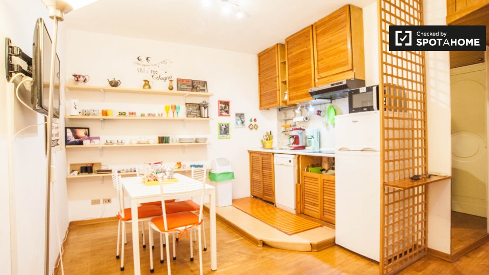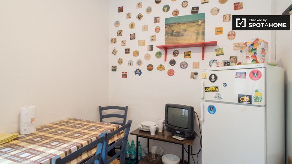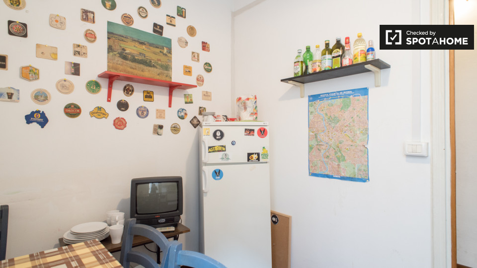Questo appartamento per studenti 3 camere da letto in Esquilino offre camere completamente arredate in affitto e 1 bagno in comune. La m² proprietà 90 è dotato di cucina attrezzata con un tavolo da pranzo e la televisione, e vi è anche una lavande...