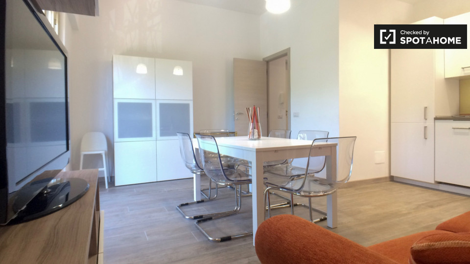 Questo spazioso appartamento con 2 camere da letto è in affitto su Via Portuense. L'appartamento si trova in un edificio moderno, con interni completamente arredati e contemporanei. La cucina e la zona giorno sono molto luminosi e spaziosi e sono ...