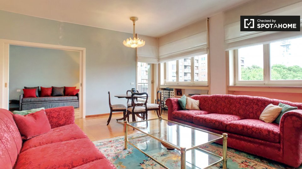 Questo appartamento con 3 camere da letto a Brera dispone di camere disponibili per l'affitto. Gli spazi comuni da condividere comprendono la cucina abitabile completamente attrezzata e il bagno completo. L'appartamento ha pavimenti in legno e un ...
