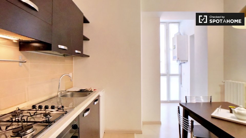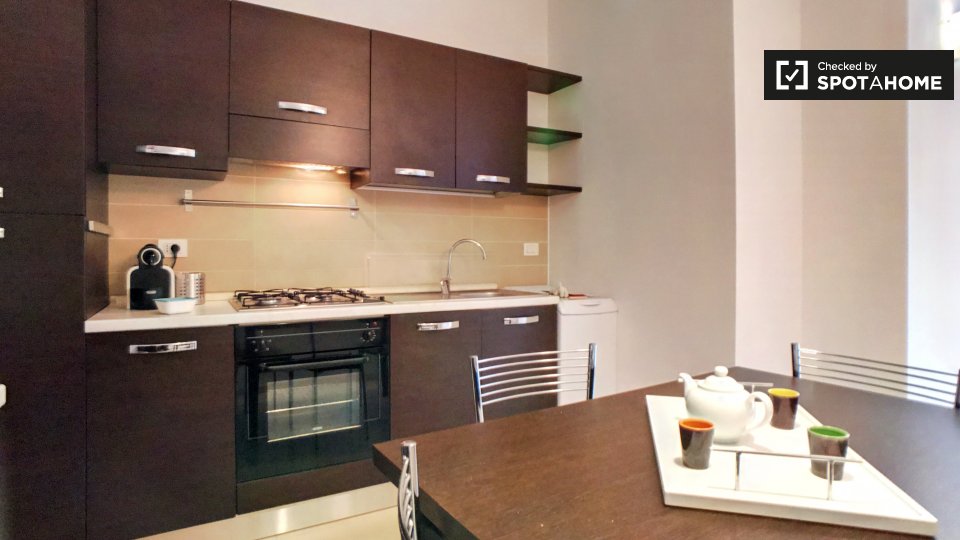 Questo appartamento completamente arredato con 2 camere da letto su Via Bernardino Telesio, Prati, è di 65 m² e dispone di riscaldamento centralizzato. C'è un bagno ordinato e una cucina con un buon bancone e un tavolo da pranzo. L'appartamento è...