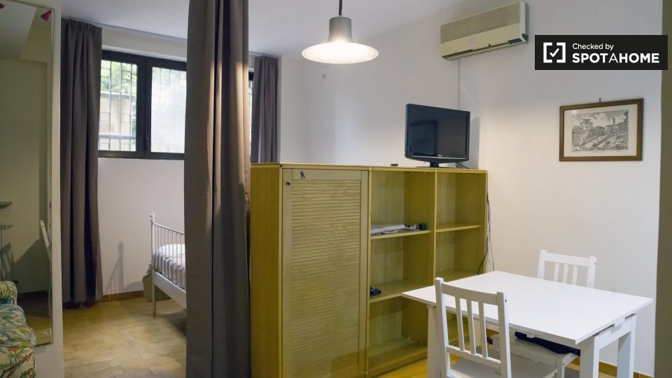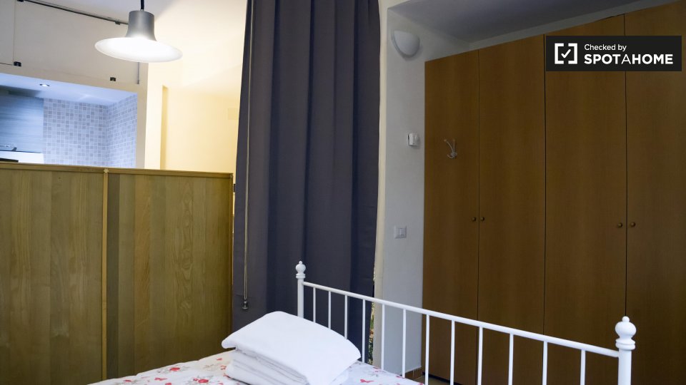 Un monolocale con animali ammessi è disponibile per l'affitto a Torrino. L'appartamento ha un'affascinante sala principale, dove troverete un grande letto matrimoniale, un bel tavolo da pranzo, un divano, una TV e un sacco di spazio per riporre tu...