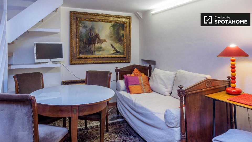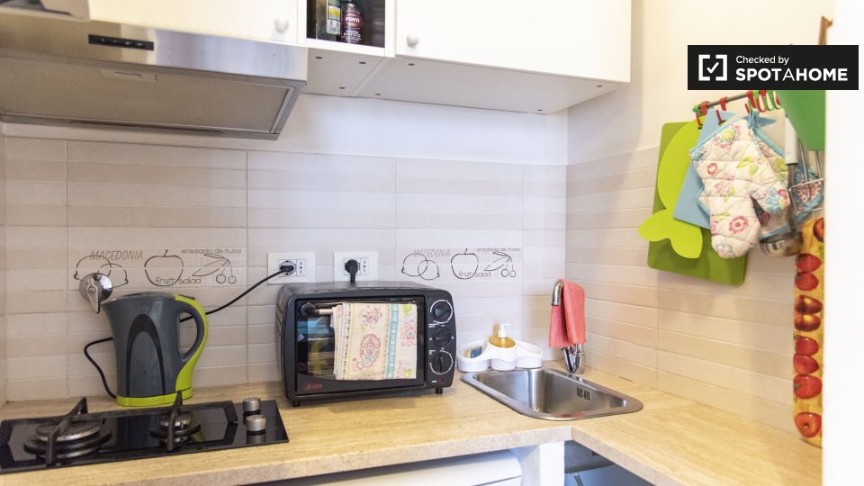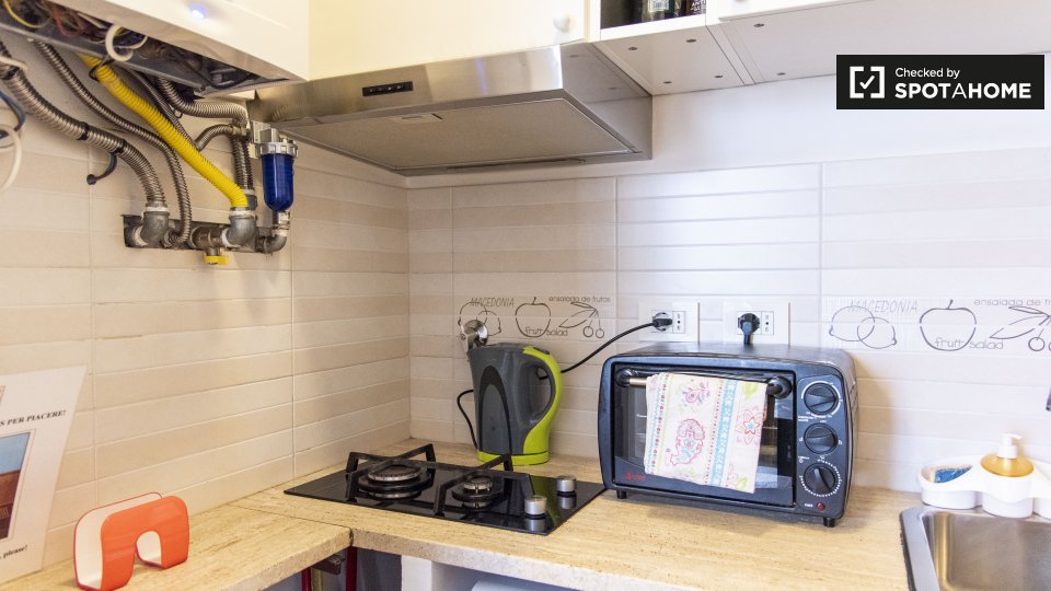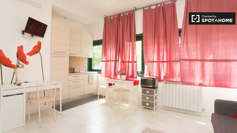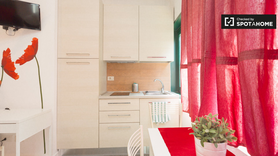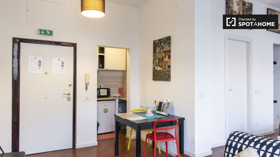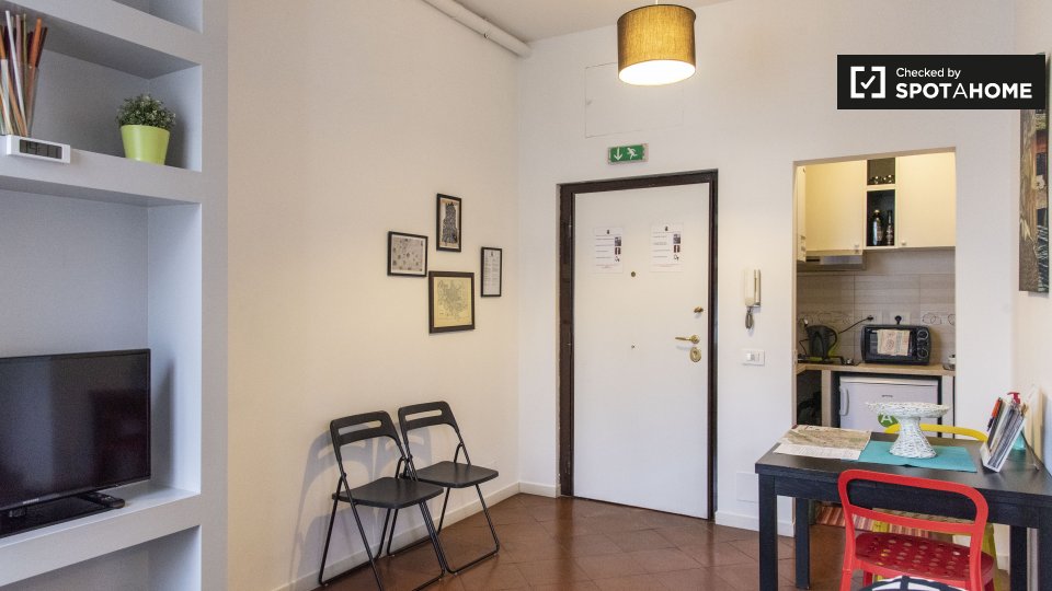 Splendido monolocale in affitto a Appio Latino. Questo appartamento ammobiliato offre tutti i comfort necessari senza sentirsi stretti. Ti piacerà il letto matrimoniale pur avendo spazio per un tavolo da pranzo e sedie ingrandibili. C'è molta scaf...