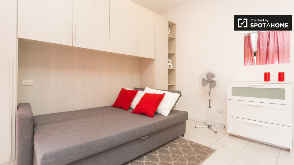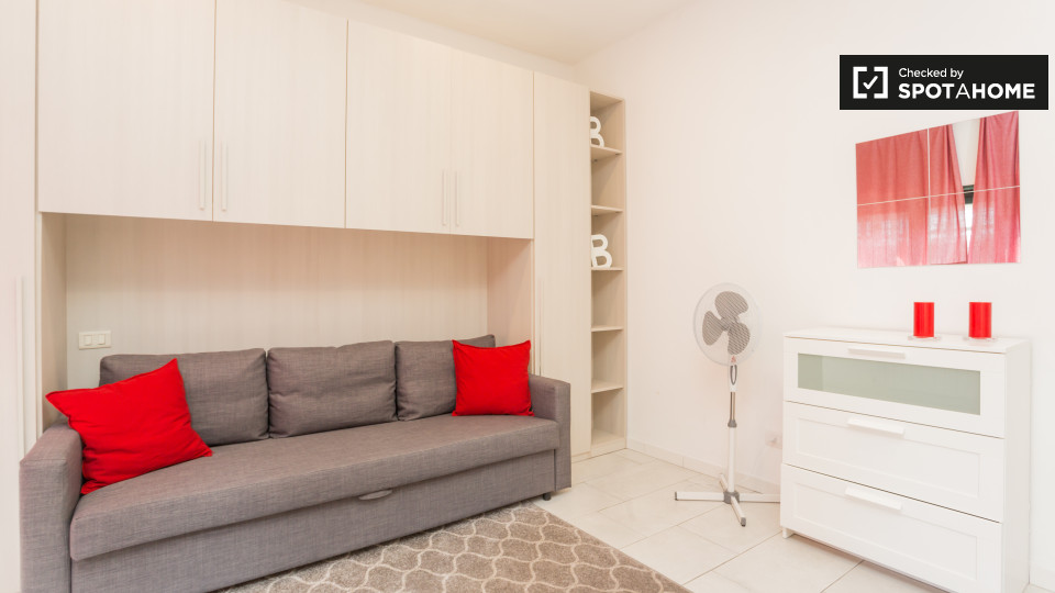 Questo monolocale di 20 m² è disponibile per affittare nel quartiere Affori è ideale per gli studenti, a soli 15 minuti a piedi dal Politecnico di Milano Bovisa. L'appartamento è dotato di un divano letto che consente di avere sia una camera da le...