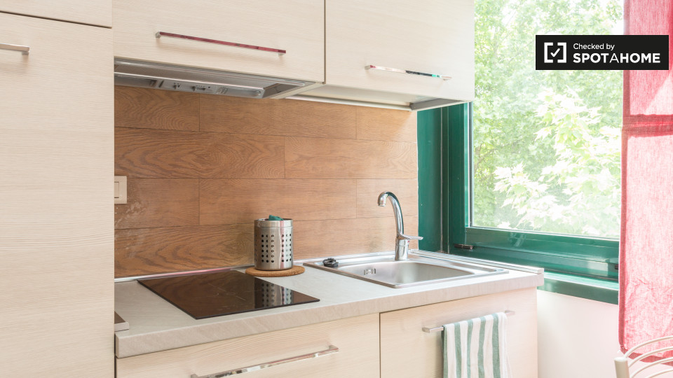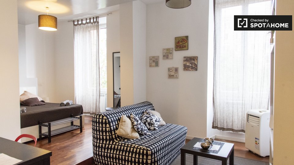 Un luminoso, ristrutturato, 30 mq monolocale con balcone è disponibile in affitto a Milano, in zona Lorenteggio. Questa proprietà è eccezionalmente soleggiato, con pareti bianche e un sacco di finestre che lasciano entrare la luce naturale. La pro...