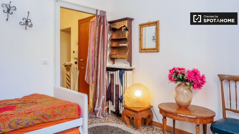 Le vivaci pareti dipinte di giallo in questo pratico appartamento con 3 camere da letto in affitto nel Centro Storico ti terranno in uno stato d'animo solare e allegro. È un appartamento fantastico da condividere. C'è una cucina comune, ma senza s...