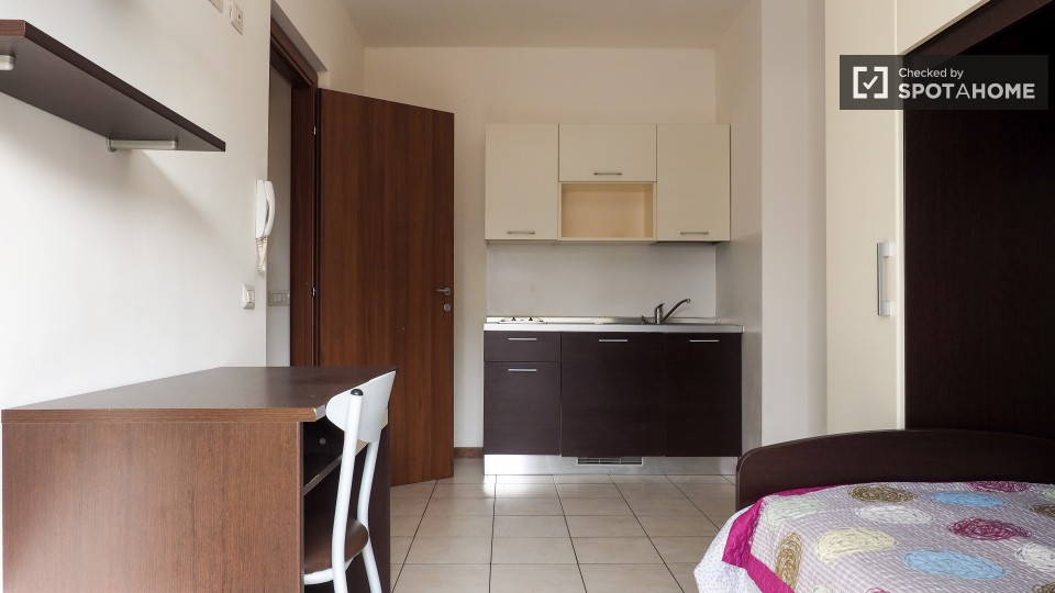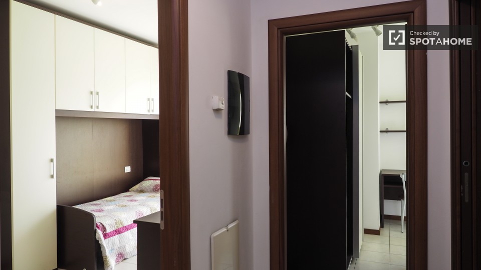 Tre camere con angolo cottura privato sono disponibili per l'affitto in un appartamento di tre camere da letto, appartamento di 55 mq situato all'interno di una residenza. Tutte le camere sono dotate di letto singolo, scrivania, armadio e riscalda...