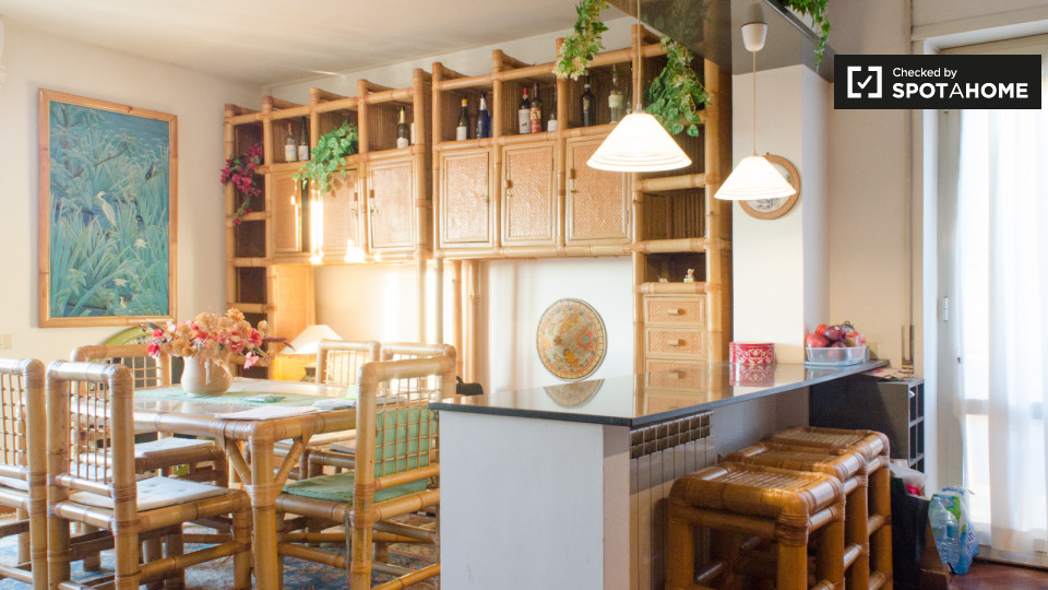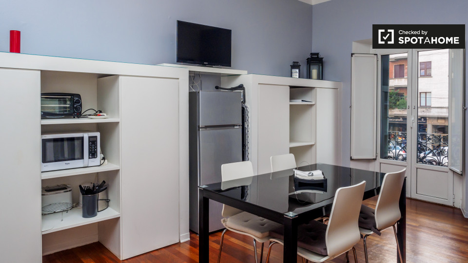 Questo colorato appartamento con 1 camera da letto e 1 bagno è in affitto nella Stazione Centrale. Con un ingombro di 60 m² su Via Giovanni Schiaparelli, questo appartamento comprende una cucina con fornello a 4 fuochi e un letto matrimoniale nell...