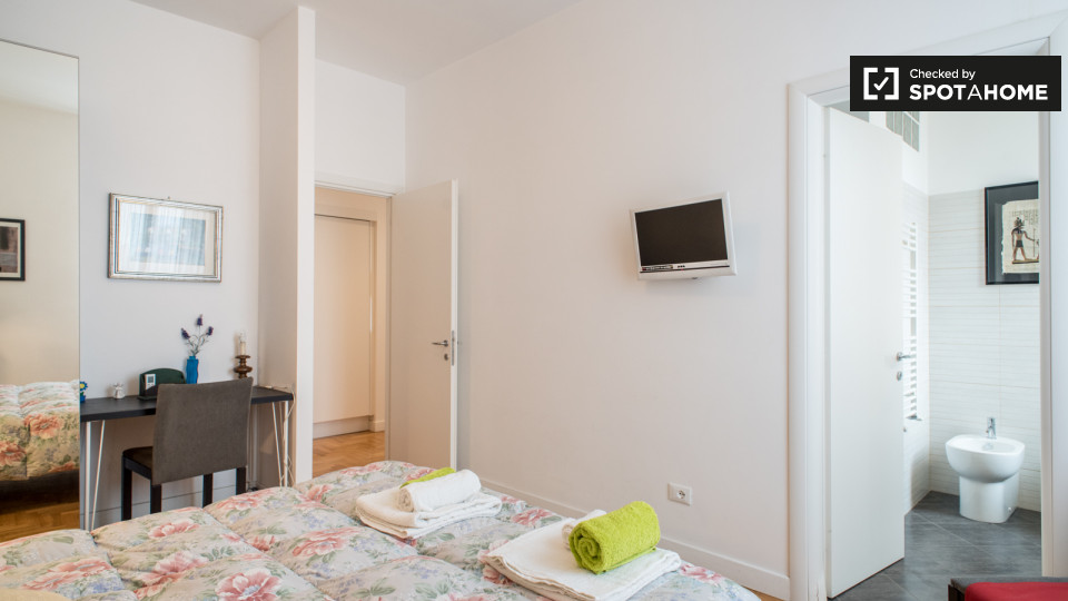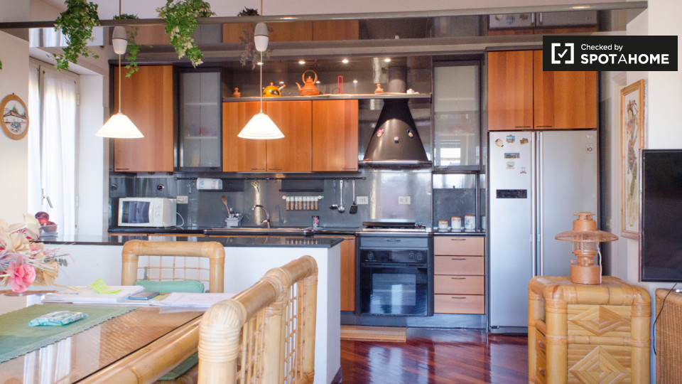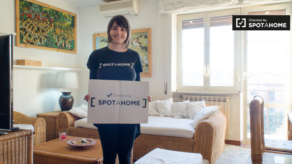 Le camere sono disponibili a noleggio in Deluxe, 95 m², appartamento con 2 camere con balcone e aria condizionata a La Storta - Olgiata. Questa proprietà è spazioso ed elegante, decorato con l'arte di buon gusto e mobili moderni. L'appartamento ha...