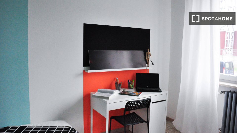 Questa camera completamente arredata è disponibile in un appartamento condiviso con 3 camere da letto situato a Santa Rita, Torino. È ideale per studenti, compresi studenti Erasmus, e non è adatto a professionisti, coppie o famiglie. L'appartament...