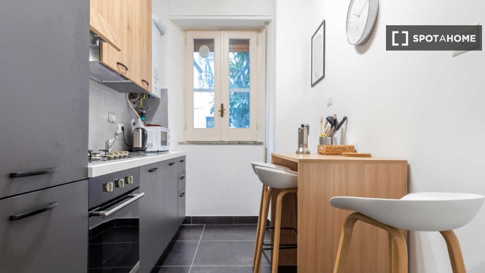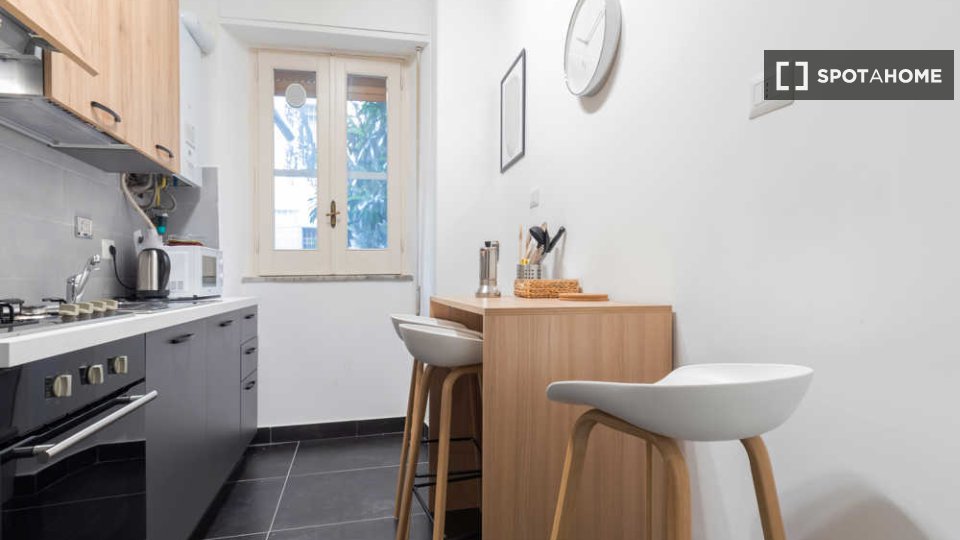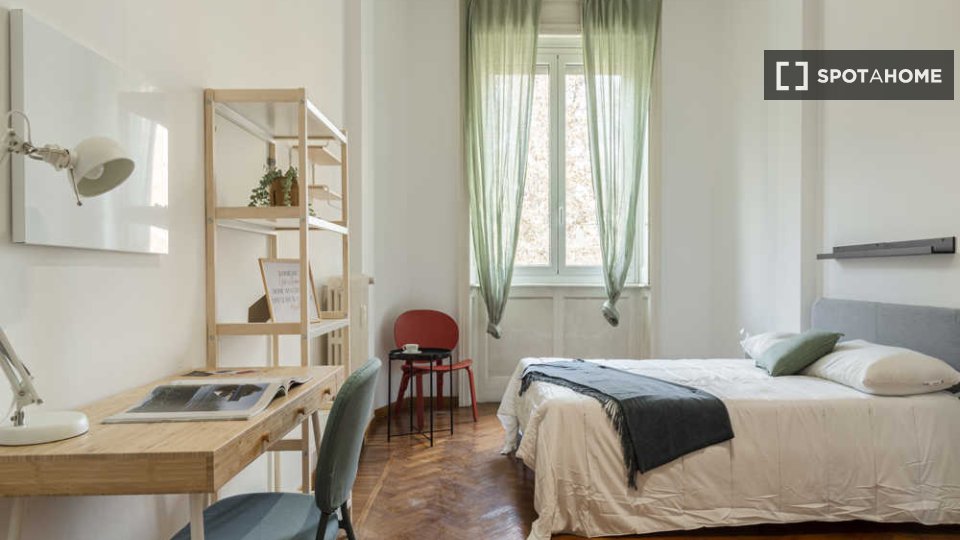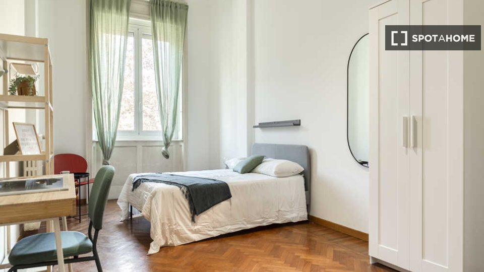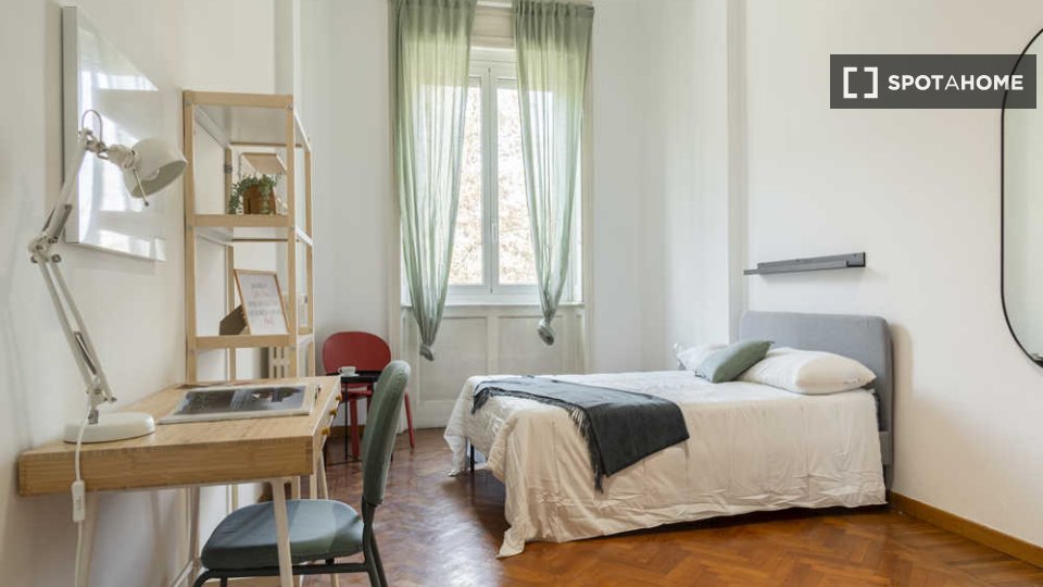 Spotahome presenta questa stanza in un appartamento condiviso con 5 camere da letto in affitto situato nel quartiere Parioli di Roma. L'appartamento è completamente arredato e dispone di una cucina ben attrezzata con comfort come forno e lavastovi...