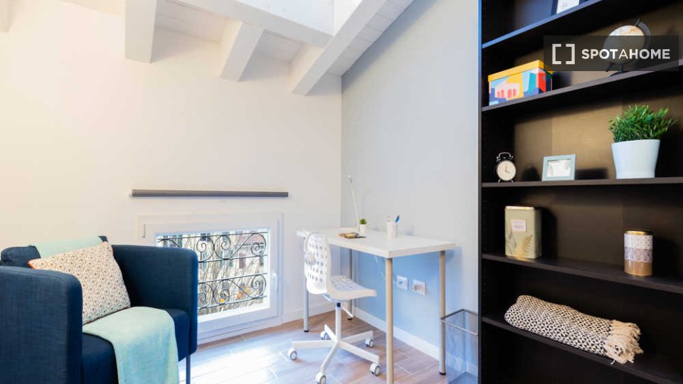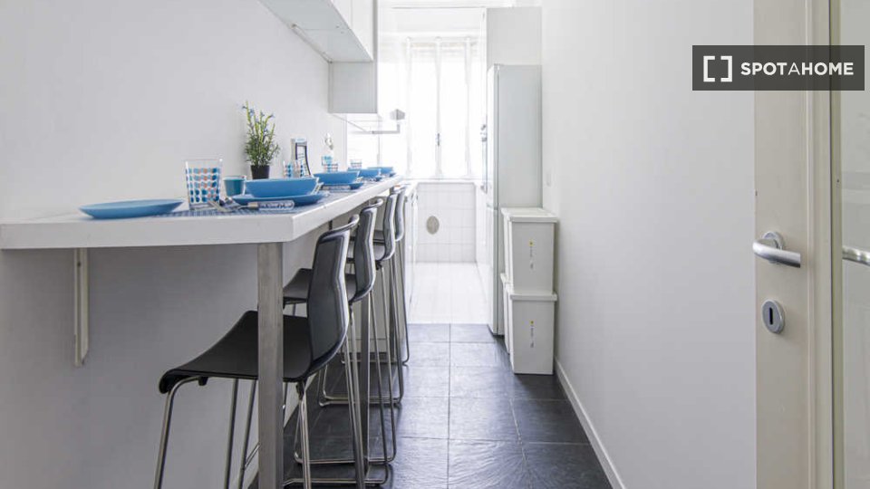 Esplora questa fantastica stanza interna in un appartamento condiviso con 4 camere da letto situato a Bovisa, Milano. L'appartamento è arredato e comprende una cucina attrezzata, riscaldamento a gas metano e lavatrice in comune. Spotahome ha verif...
