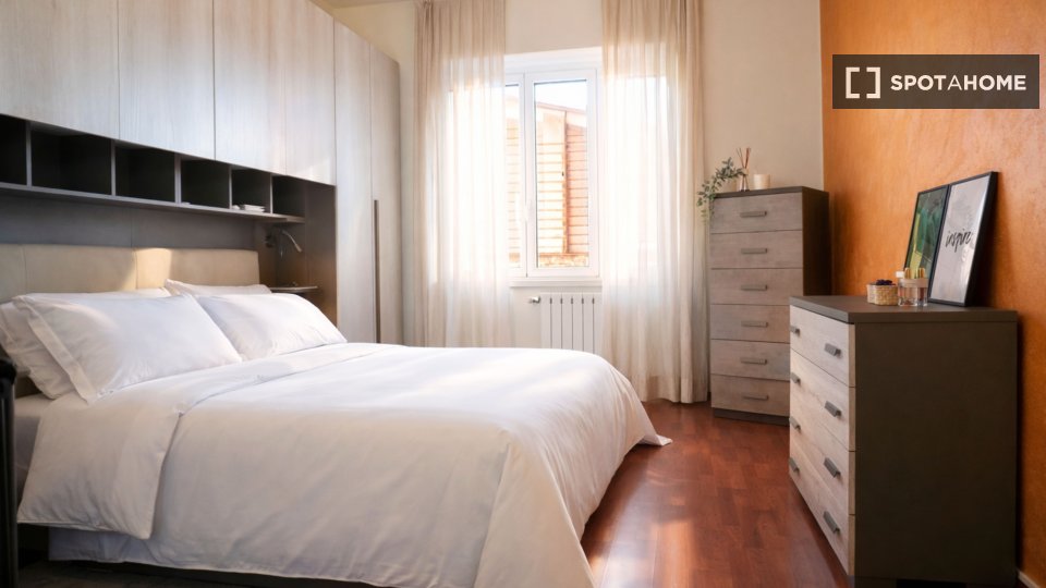 Esplora questa accogliente camera in un appartamento condiviso con 2 camere da letto situato a Tor di Quinto, Roma. L'alloggio è completamente arredato e dispone di riscaldamento a gas metano, cucina attrezzata con lavastoviglie e forno, e servizi...