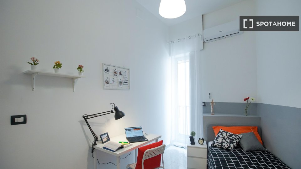 Questa camera completamente arredata, disponibile in un appartamento condiviso con 6 camere da letto, è perfetta per studenti, compresi quelli Erasmus. Situata in posizione centrale a Montecalvario, questa camera è adatta agli studenti, poiché i s...