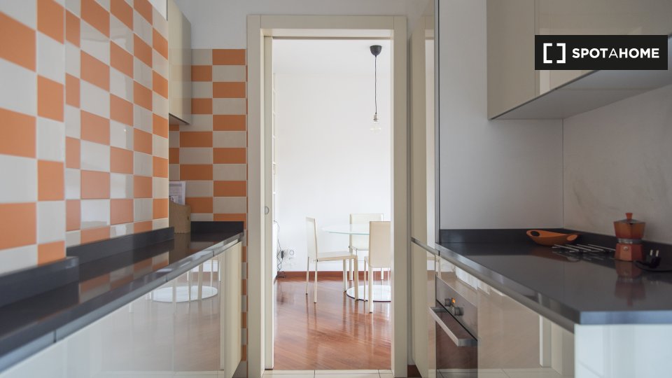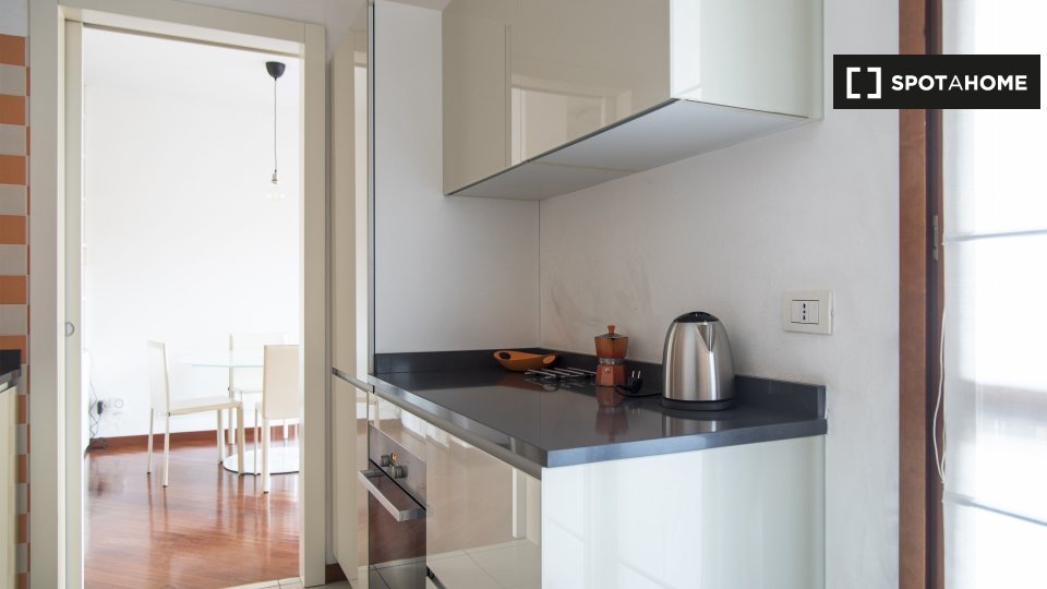 Scopri questo moderno appartamento con una camera da letto in affitto a San Donato Milanese. Completamente arredato e attrezzato, questo immobile include aria condizionata individuale e vanta fantastici comfort come lavatrice privata, TV e balcone...