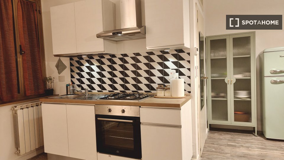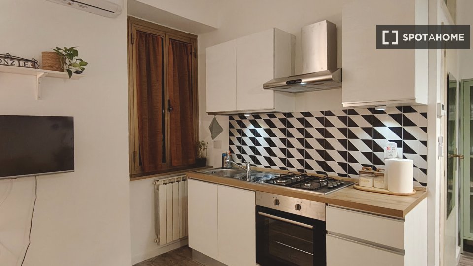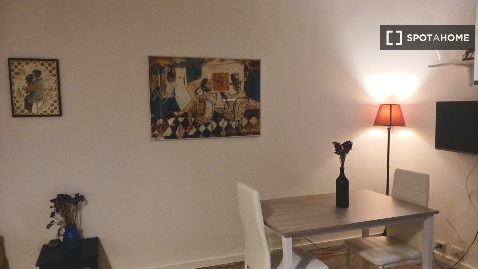 Entrate in questo accogliente appartamento con una camera da letto situato nel vivace quartiere del Pigneto. L'appartamento è completamente arredato e offre un sistema di riscaldamento a gas metano e aria condizionata individuale per il vostro com...